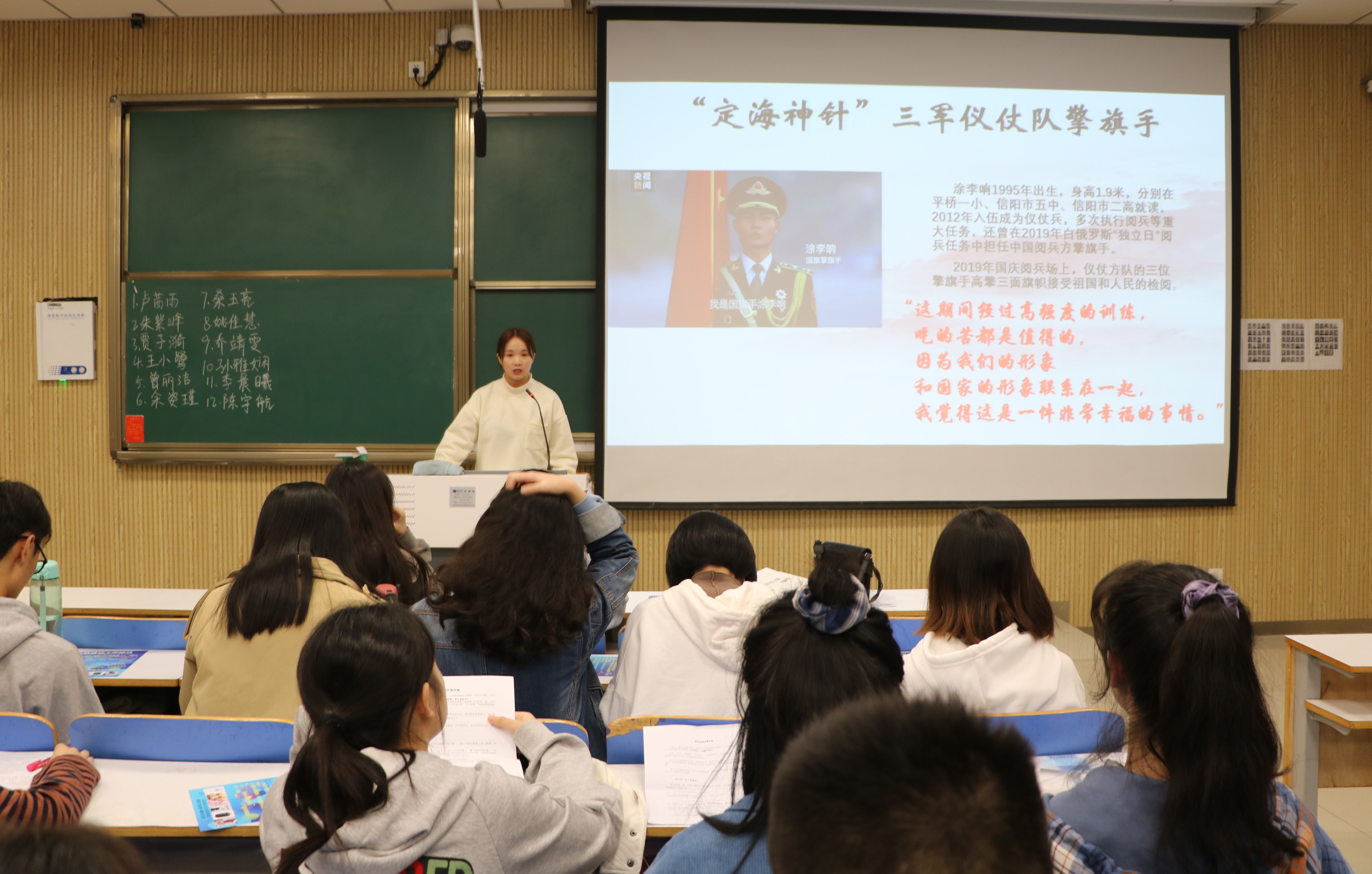 本次微团课比赛12名同学围绕比赛主题“我与祖国共命运”依次展开演讲。各位评委秉持公平、公正、公开的原则从参赛同学作品的内容设计、主题切合度等方面进行综合评分。从比赛效果来看,各位参赛同学准备充分,流利自信的演讲与精美的PPT相得益彰,充分展现出马院学子的青春风采。其中,姚佳慧以“不忘初心,奉献芳华”为题,讲述了疫情期间青年人甘于奉献,勇敢追梦的故事,用词精彩,声情并茂,极具感染力。余姿瑾以“构建人类命运共同体”为题进行演讲,她的PPT设计精美独特,穿插音频,内容生动,意义深刻,获得大家好评。