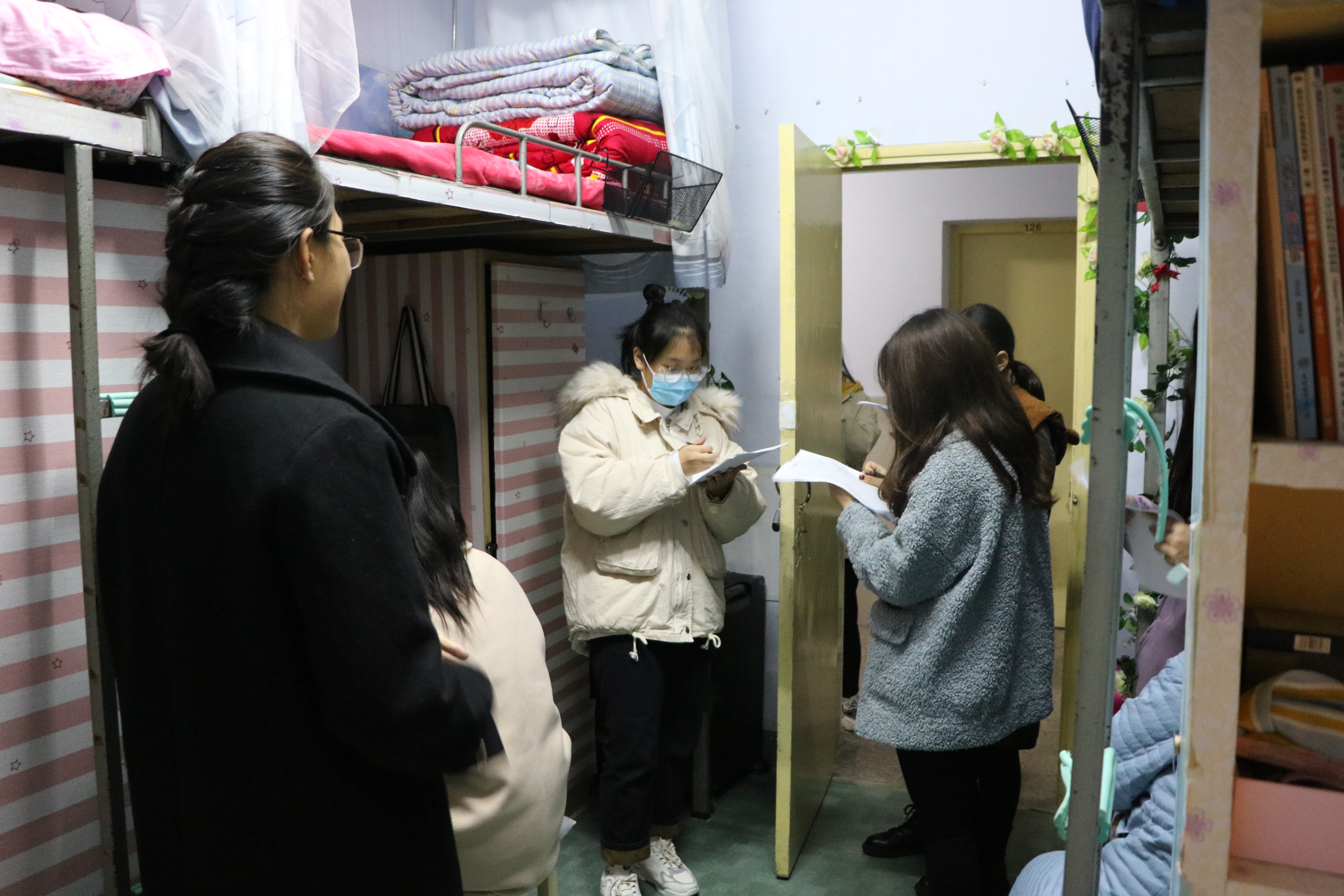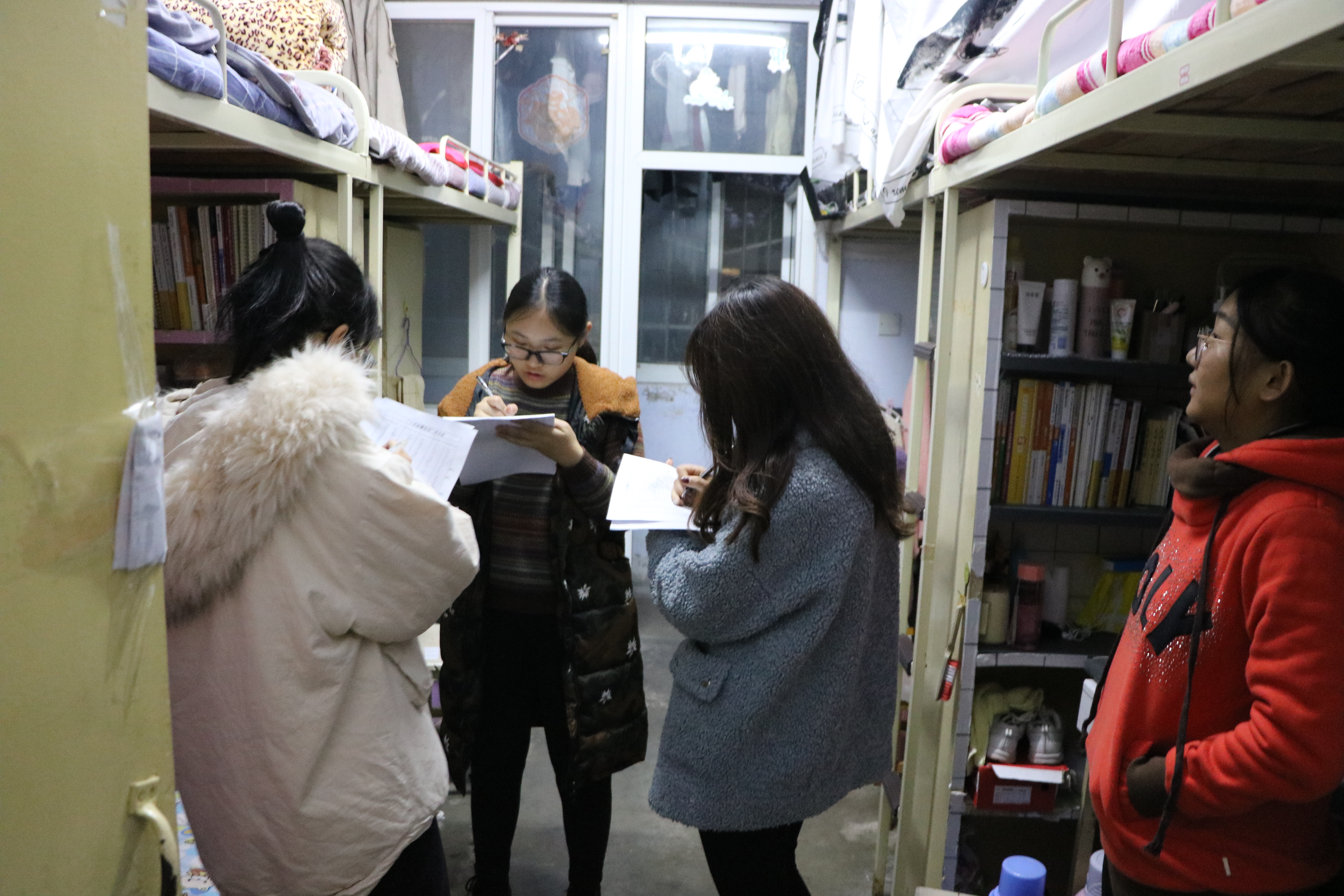 本次评比包括宿舍安全、宿舍内务、宿舍文化、宿舍外观四个方面。宿舍代表依次向评比人员展示宿舍舍规、宿舍装饰、宿舍内的绿色元素等宿舍情况。严肃认真的舍规舍纪,富有创意的废旧物品改造,温馨整洁的宿舍环境彰显了我院学生绿色环保意识和积极向上的生活态度,体现了我院学生良好的宿舍氛围和融洽的宿舍关系。随后,我院生活劳卫部成员对宿舍违规电器、安全隐患进行排查,并对学生进行安全知识宣传,提醒同学们要严格遵守校规校纪,维护宿舍安全。最后,生活劳卫部成员根据评分细则对每个宿舍进行综合打分,评比在同学们的积极配合下顺利完成。
