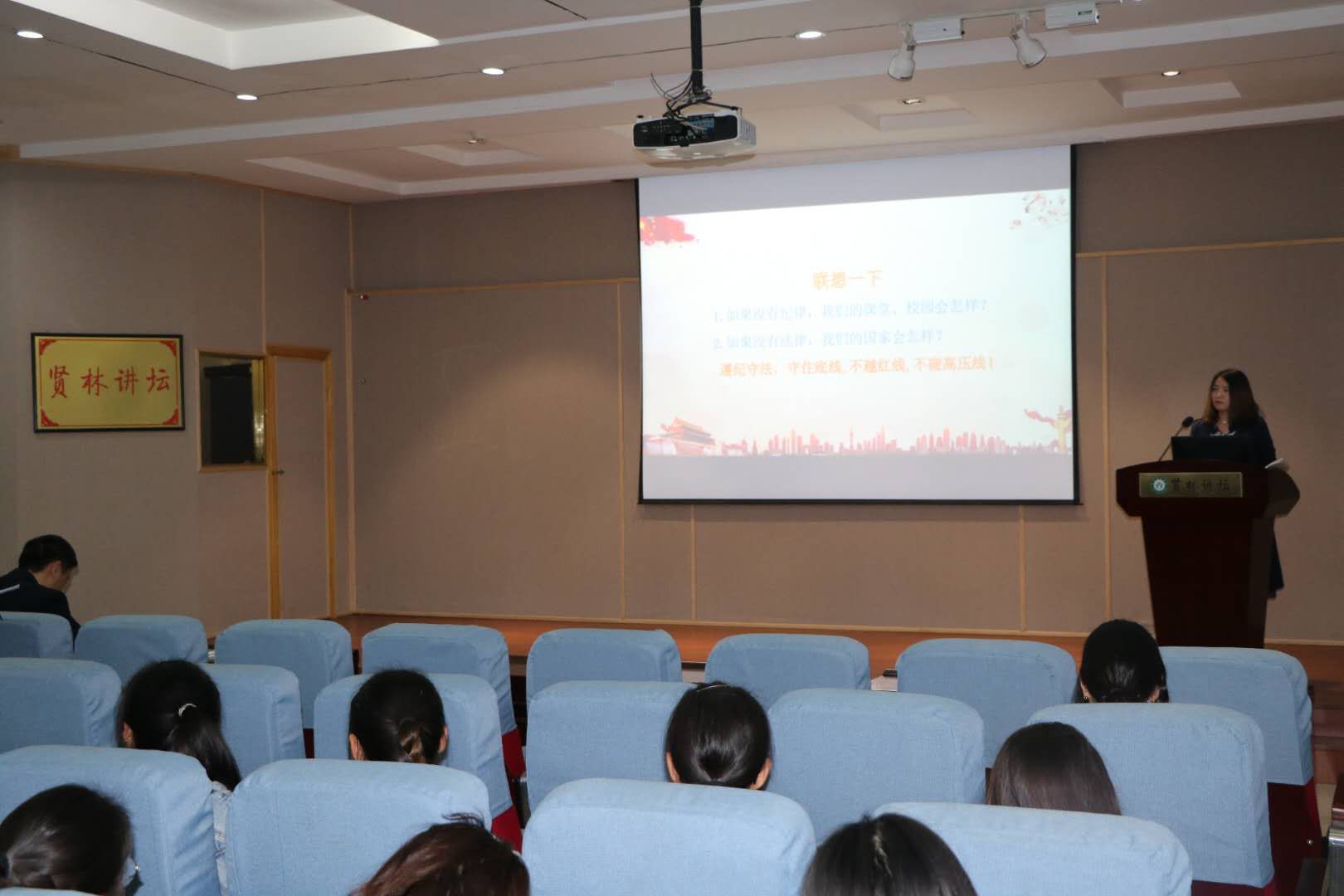 10月20日下午,WilliamHILL中国在贤林讲坛召开2019级新新生校规校纪学习会。我院党委副书记何晓坚、团委书记曹栋、辅导员陶青青、优秀研究生代表王秋铮、2017级学生代表王雅纯以及全体新生共同参加本次会议。会议由刘晓哗主持。