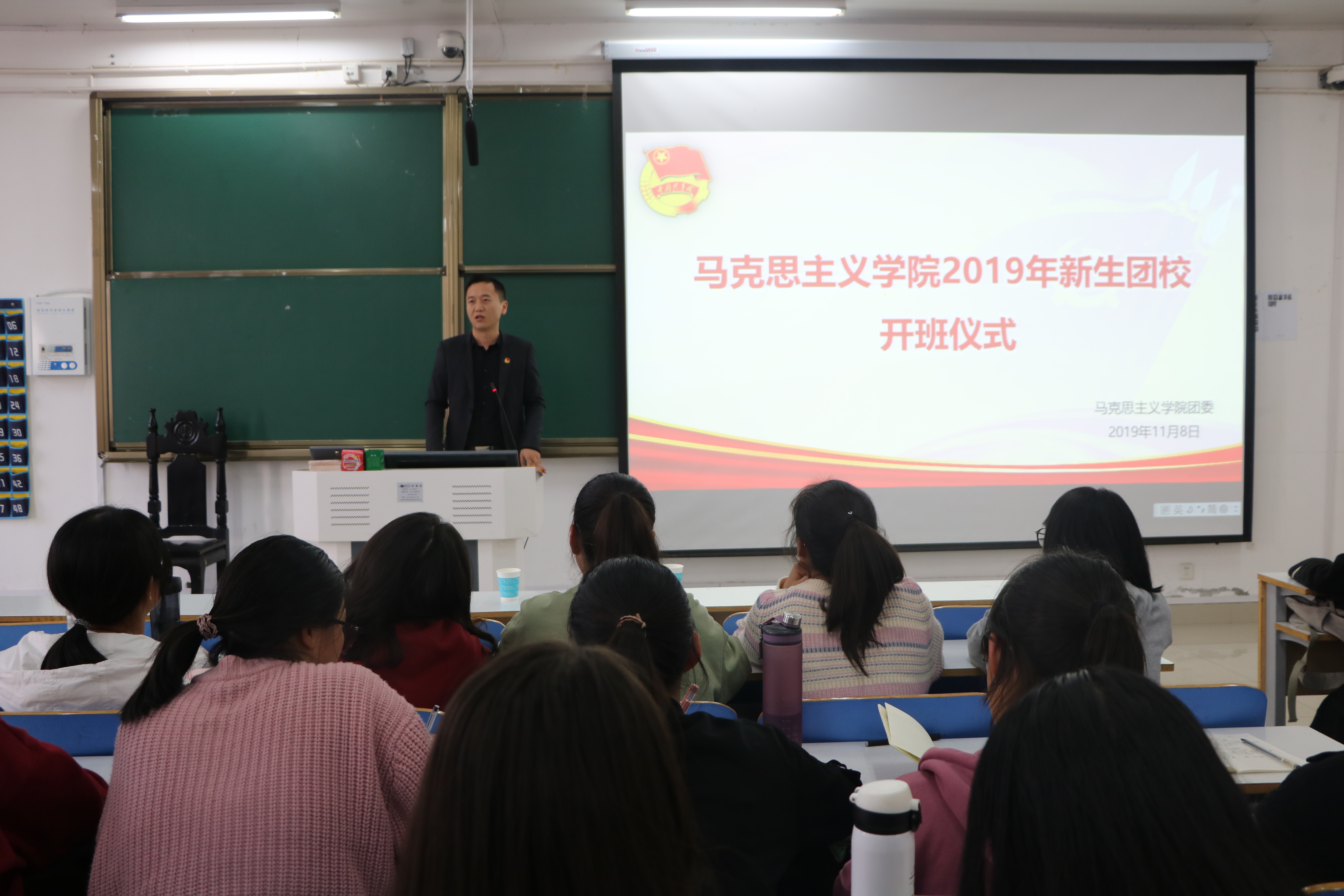11月8日下午,WilliamHILL中国在社科楼516教室举办2019级新生团校开班仪式。团委书记曹栋,团委老师陶青青,18级部分团员及19级全体新生共同参会。会议由2018级团员李静主持。
