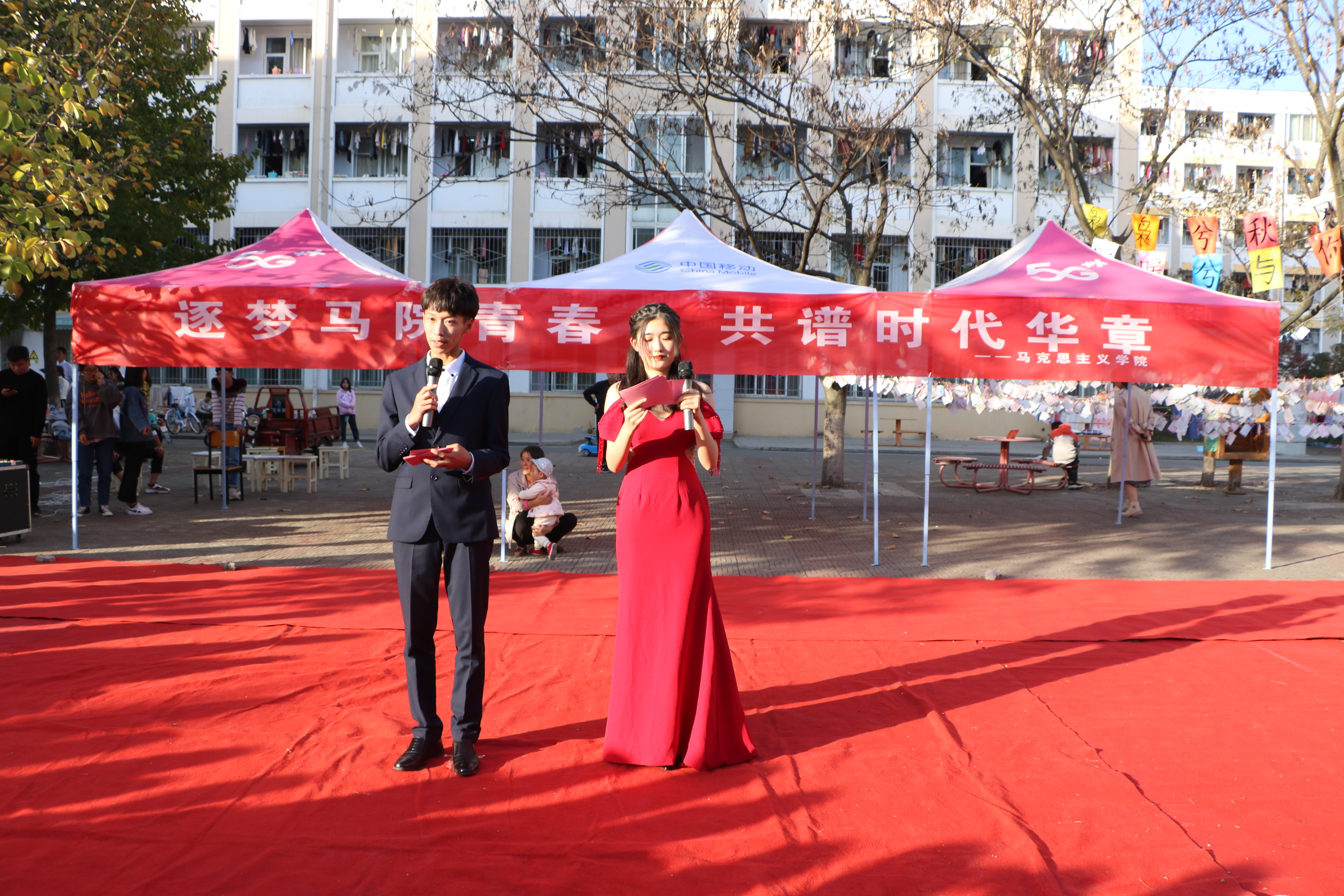 11月10日下午,由WilliamHILL中国主办的“逐梦马院青春,共谱时代华章”文艺汇演在八餐小广场隆重举行。我院团委老师陶青青、2019级全体同学共同观看本次汇演。汇演由我院学生王誉博和吕昂主持。