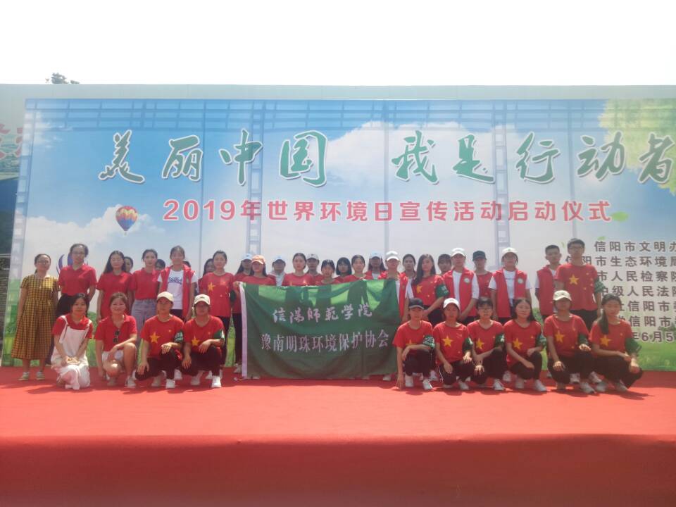 为增强公民生态环境保护意识,弘扬青年志愿服务精神,6月5日上午,豫南明珠环境保护协会应邀参加我市2019年“美丽中国·我是行动者”世界环境日主题活动启动仪式。此次活动由团委老师曹菁菁陪同前往。