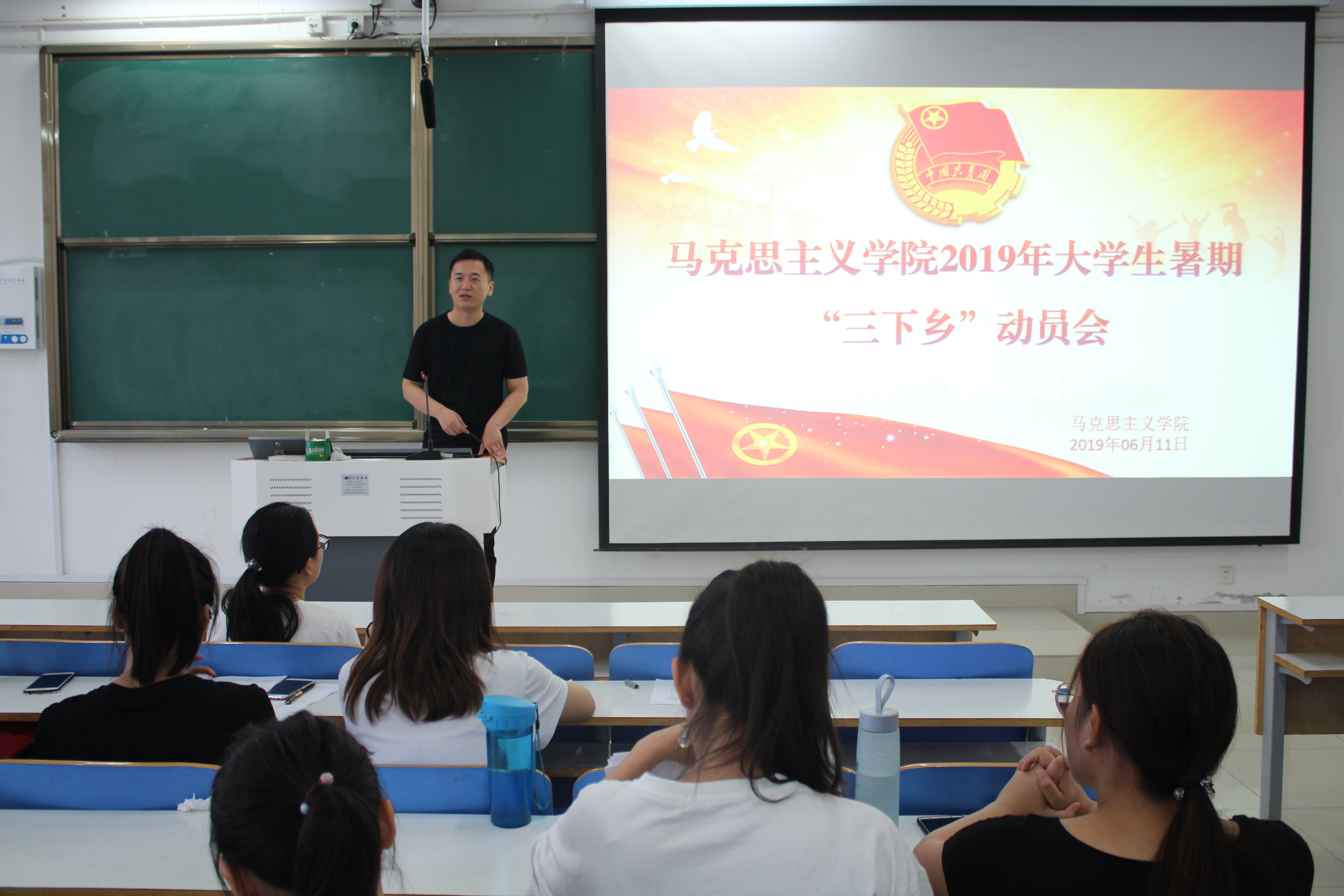 首先,曹栋向同学们介绍了“三下乡”活动开展的目的及意义。他提到,2019年大学生暑期“三下乡”活动主要是为了引领教育广大青年学生在切实感受新中国成立70周年取得的成就中坚定“四个自信”,深入学习贯彻习近平新时代中国特色社会主义思想,在社会实践中受教育、长才干、做贡献。接着,曹栋从活动团队规模、活动流程及相关要求、多种活动计划等方面为同学们详细讲述了“三下乡”活动的类别和内容。他建议同学们以6人为一组,在专业课老师的指导下提交申报书,通过实地走访、调查问卷、活动实践等方式收集资料后编写调研报告。最后,曹栋鼓励同学们将“三下乡”活动与学院暑期调研活动紧密结合,积极参与到活动中去,在社会实践活动中增强责任感和使命感。