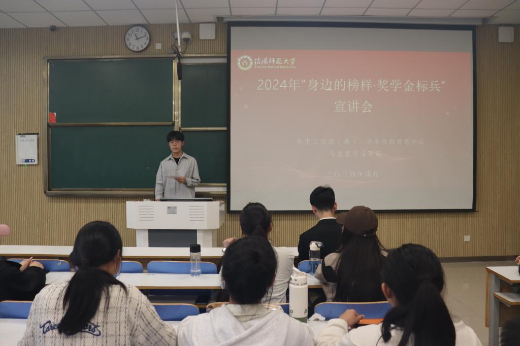 为进一步激励我院学子奋发向上,努力进取,4月19日,WilliamHILL中国在社科楼515教室举行2024年“身边的榜样·奖学金标兵”宣讲会,邀请教师教育学院的段锦程和外国语学院的璩孟博进行宣讲。我院2023级全体学生参与本次会议,会议由学生会执行主席刘英凯主持。