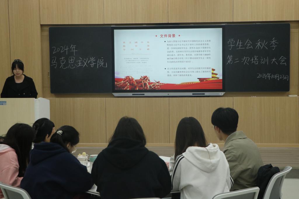 大会伊始,由综合联络处负责人刘一涵讲解“第二课堂”的使用方法。她带领学生干部深入了解“第二课堂”的组织管理、活动板块、申报审批和学时发放等内容。培训过程中,学生干部积极互动,提出疑问和困惑,刘一涵耐心解答,并结合以往案例,提出许多切实可行的解决方案。随后,团委办公室负责人翟伟带领学生会成员研讨《推动高校学生会(研究生会)深化改革的若干问题》文件。