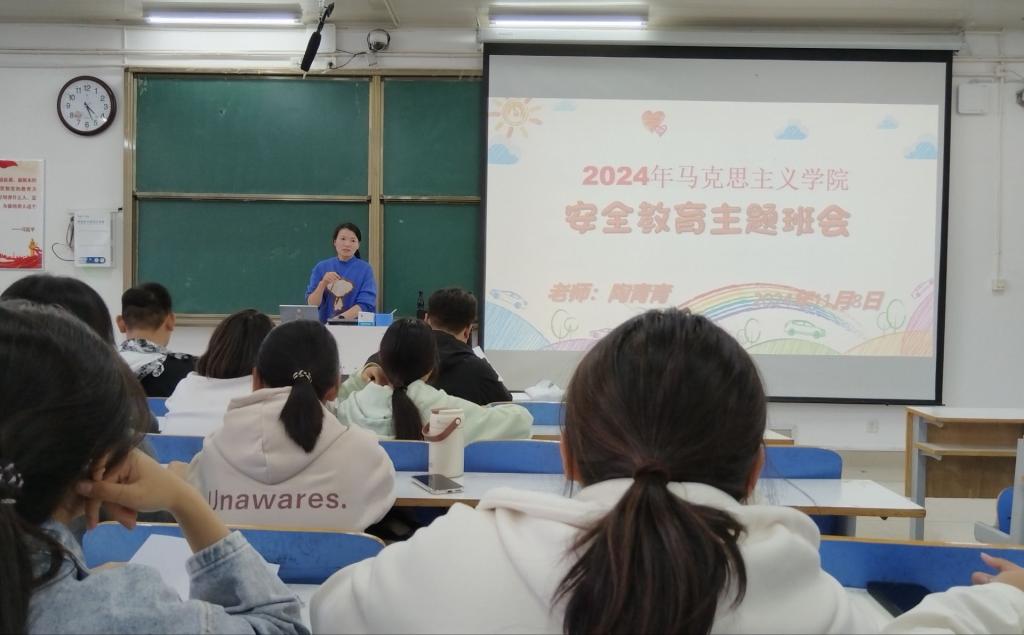 此次班会分为“安全教育”和“学风建设”两部分。首先,辅导员陶青青着眼社会热点,强调“夜骑”充满了诸多的不安全因素,鼓励同学们通过更加安全合理的方式来释放压力,锻炼身体。聚焦校园安全,她要求同学们要时刻关注校园交通安全,遇到紧急情况时冷静应对,及时报告。
