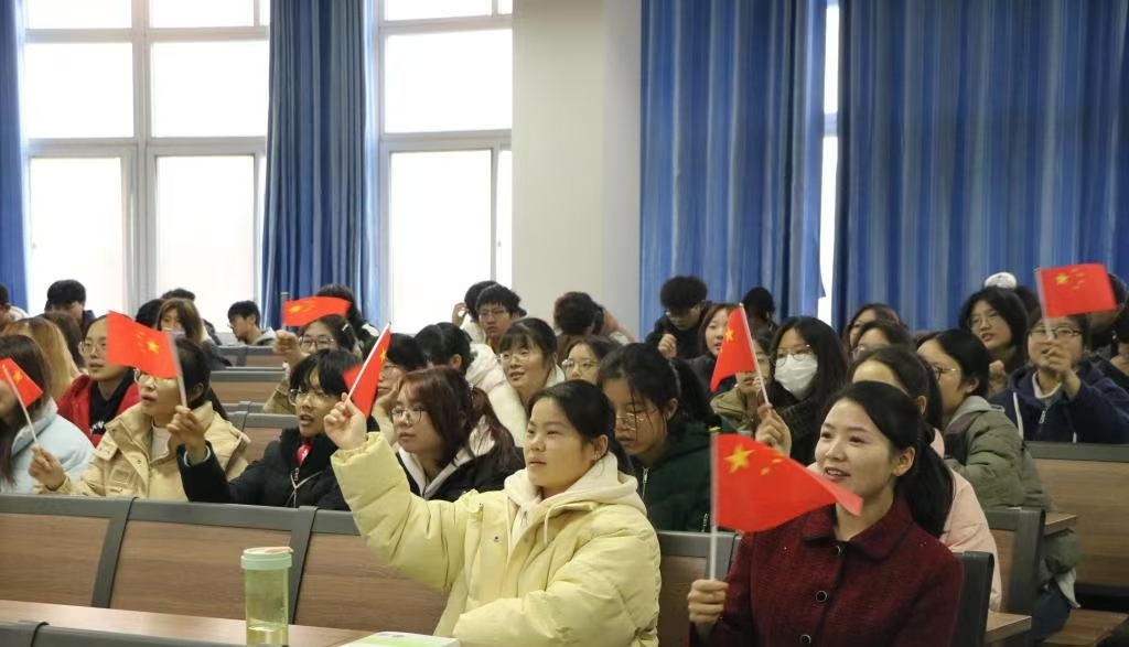 宣讲开始,主持人徐曼珍向大家介绍了大别山精神的基本内涵。接着,宣讲团的六位成员依次登台为大家讲述发生在大别山这片红色热土上的革命故事,生动形象的语言、真诚流露的情感、慷慨激昂的演绎,无一不让在场的每位观众动容。杨迎滨带来《传承大别山精神,续写时代华章——妇女排的热血坚守》,让观众们了解到妇女排坚守阵地、奋勇杀敌的感人故事;杨春通过《复仇》,展现了革命斗争的激烈与残酷;孙静怡的《只要我不死,就要闹革命》深情讲述了革命者的顽强与执着。最后,王彦旭为大家带来红色歌曲《我爱你中国》,用深情细腻的歌声对祖国真情表白,点燃了在场师生的爱国热情,同学们积极互动,齐声合唱,展现了新时代大学生的拳拳爱国心、殷殷报国情,将整场宣讲活动推向高潮。