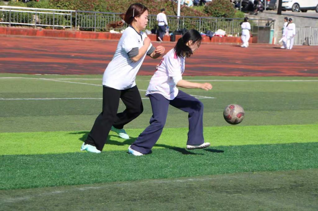 赛前,我院队员积极备赛、充分热身,院学生会各部门通力合作,为球队提供后勤保障,确保队员们以最佳状态迎接比赛。随着主裁判哨声响起,比赛拉开序幕。上半场开始,双方队员迅速进入状态,展开激烈对抗。我院队员凭借严密的防守体系和流畅的传控配合,多次化解对方攻势。在进攻端,队员们通过传球和跑位,不断在对方半场制造威胁。中场休息期间,教练组与队员们总结比赛,针对上半场情况调整部署。队员们积极交流,统一作战思路,以更饱满的斗志迎接下半场比赛。易边再战,我院女足展现出更强的进攻态势。第50分钟,中场队员送出一记精妙的直塞球,左帅宇迅速前插,在摆脱防守后推射破门。这一精彩进球瞬间点燃了全场气氛,看台上响起阵阵欢呼。领先后,队员们继续保持高度专注,执行战术部署。防守端表现稳健,门将多次做出关键扑救,最终将1:0的比分保持到终场。