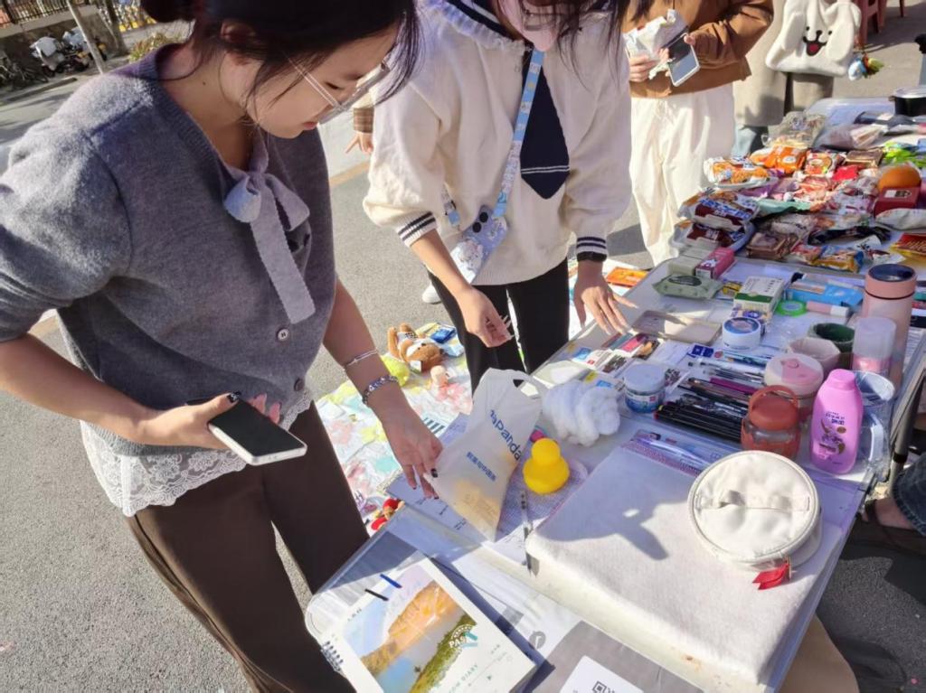 活动现场暖意氤氲,青春风采与爱心力量交织绽放。本次义卖由学生志愿者自发牵头,大家利用课余时间精心筹备,将闲置文具、书籍、玩偶及手工艺品分类规整、整齐陈列。每一件物品都承载着捐赠者的心意与故事,凝聚着对他人的真挚关怀。活动创新推出“任意物品,一元购”模式,让爱心传递更显公平普惠。实用的学习用具、别致的手作好物,凭借亲民价格与丰富品类,吸引众多同学驻足挑选、踊跃参与。现场热闹有序,同学们不仅积极选购心仪物品,还主动协助维持秩序,耐心为咨询者答疑解惑,用行动诠释着青春的担当与温度。