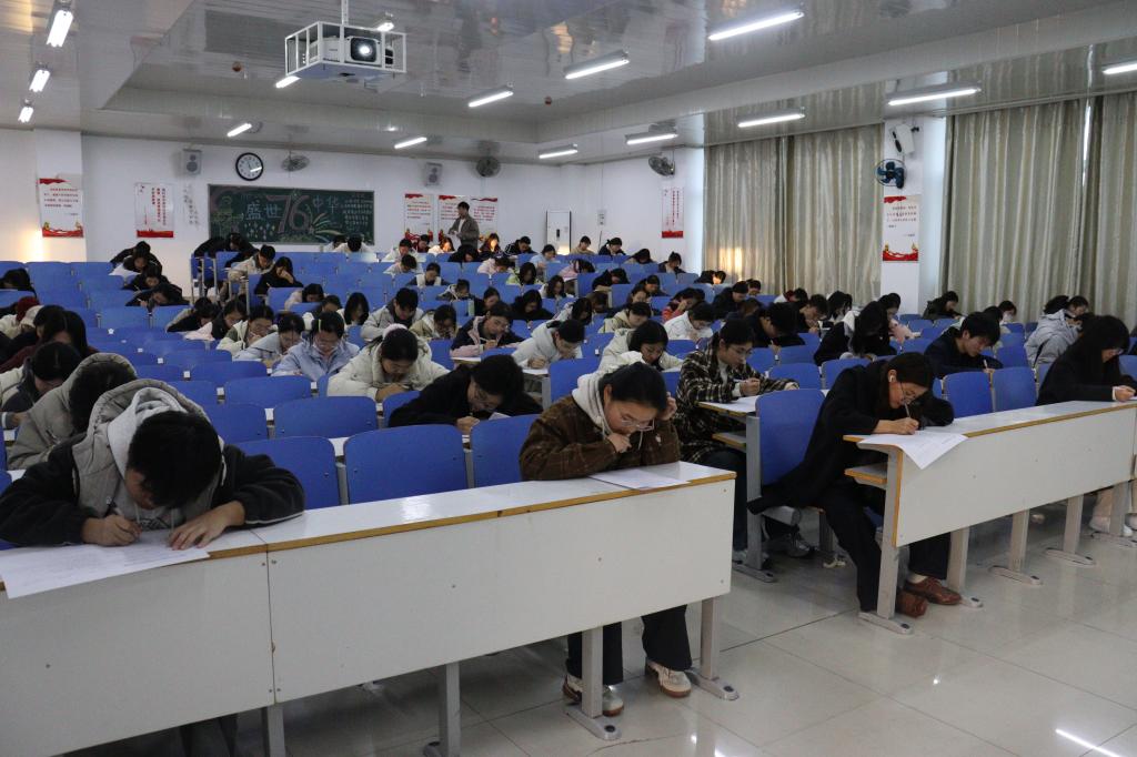 本次考试采用闭卷形式,时长一小时,以《思想政治教育材料选编——2025年学生工作规章制度专刊》为核心命题依据。考试设置选择、判断、填空、简答、论述五大题型,全面覆盖学校管理制度、综合测评办法、违纪处分细则、奖学金评定标准及宿舍管理规范等重点内容,实现知识考察的全面性与针对性。考前,各班负责人精准传达考试要求,有序完成考场布置与试卷分发;考试过程中,监考员严格履职、全程巡查,新生们专注审题、认真作答,严守考试纪律,考场秩序井然;考试结束后,监考员统一收卷装订,学生们依次有序离场,整场考试规范高效。