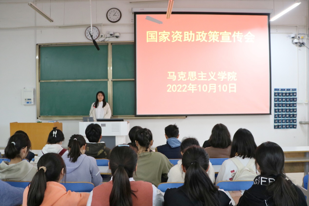 为使新生深入了解国家资助政策,确保国家各项资助政策顺利推行,10月11日中午,我院于社科楼415教室召开国家资助政策宣讲会。我院权益保障部成员与2022级全体学生共同参加了本次宣讲会。宣讲会由权益保障部负责人孔心翼、朱梦蝶主持。