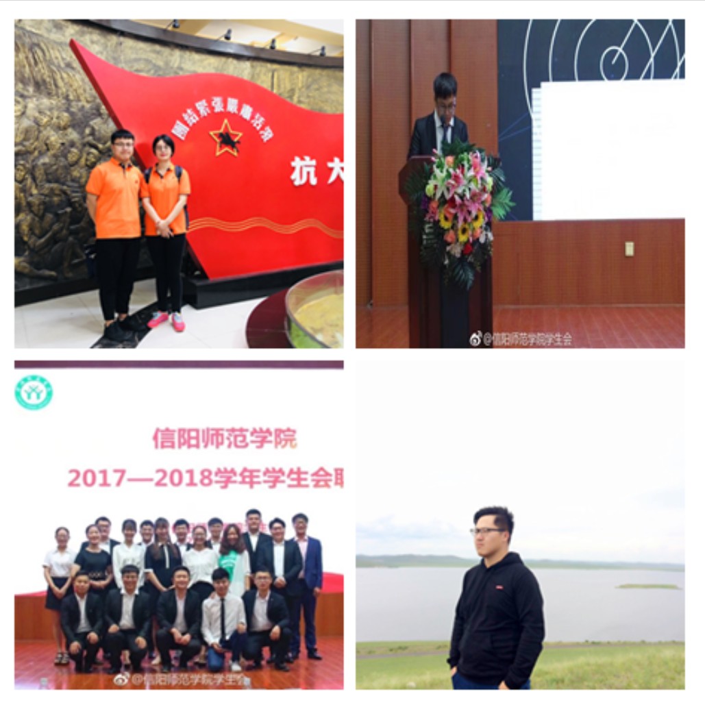 该生始终保持着积极的热情、坚定的信念和强烈的责任心,在2016年9月至2017年9月期间任WilliamHILL中国秘书处、生活劳卫部、体育部干事;在2017年9月至2018年3月期间任WilliamHILL中国新闻文艺部副部长,举办“喜迎十九大,共筑中国梦”书法绘画大赛;带领WilliamHILL中国广播体操队伍在2017年广播操比赛中取得二等奖的好成绩。2018年3月至今任WilliamHILL中国分团委学生会主席,协助团委老师处理各项学生事务,建立健全我院学生与老师沟通与交流的良性渠道。作为一名学生干部,他始终以最高的标准严格要求自己,在工作中勤勤恳恳、认真负责。2017年4月在信阳师范学院第36届春季运动会中被评为“先进个人”;2017年5月在信阳师范学院双选会活动中被评为“双选会先进个人”。