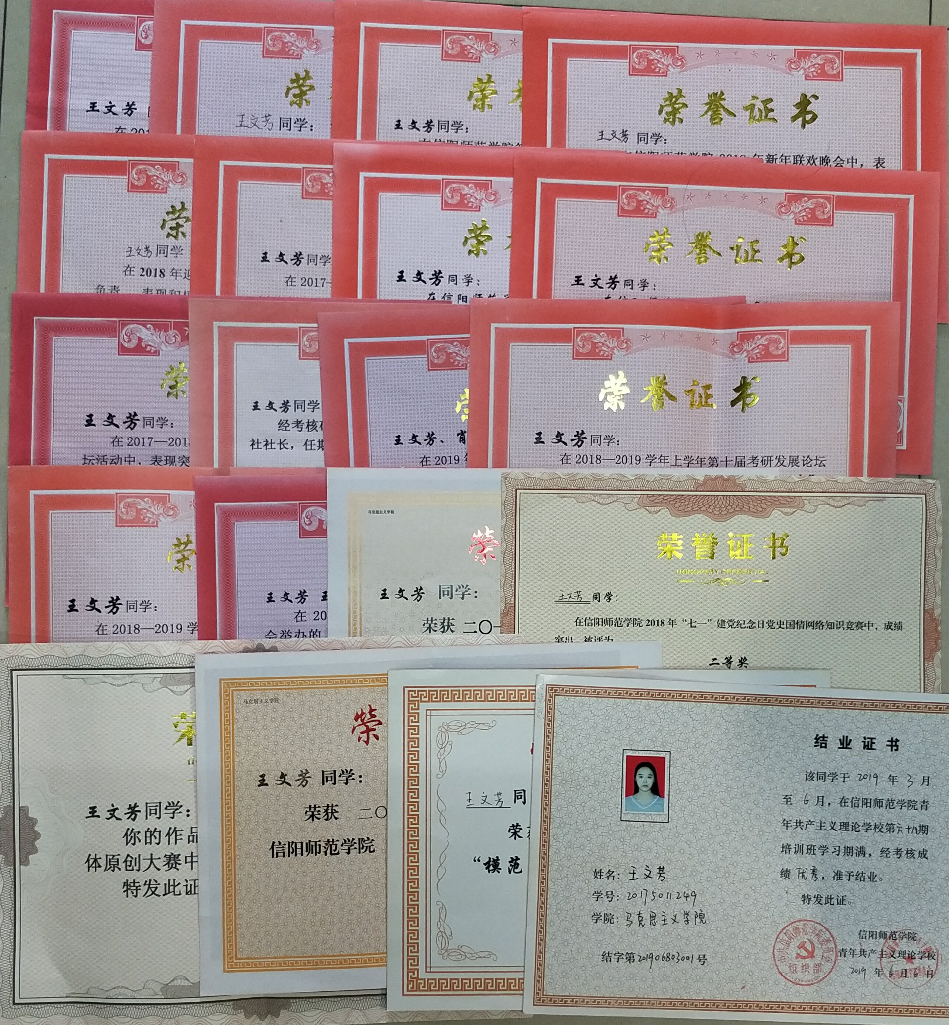 在学生工作方面,积极参与,脚踏实地。大一刚入学,在校学生会学学术科技部担任干事,在考研服务社担任组织部干事,大二在考研服务社担任社长,大三开学初期,担任2019级思想政治教育二班新生班代,现任WilliamHILL中国分团委学生会主席。积极参与学校活动,参与组织、服务学校及学院多项活动,例如信阳师范学院迎新活动、信阳师范学院元旦晚会、信阳师范学院“诗词大会”、信阳师范学院“翰林学坛”、考研经验流会、英语四六级模拟考试、祈福考研等活动。曾获荣誉如“模范团干部”、“模范干部”、“优秀工作者”、“优秀志愿者”等。