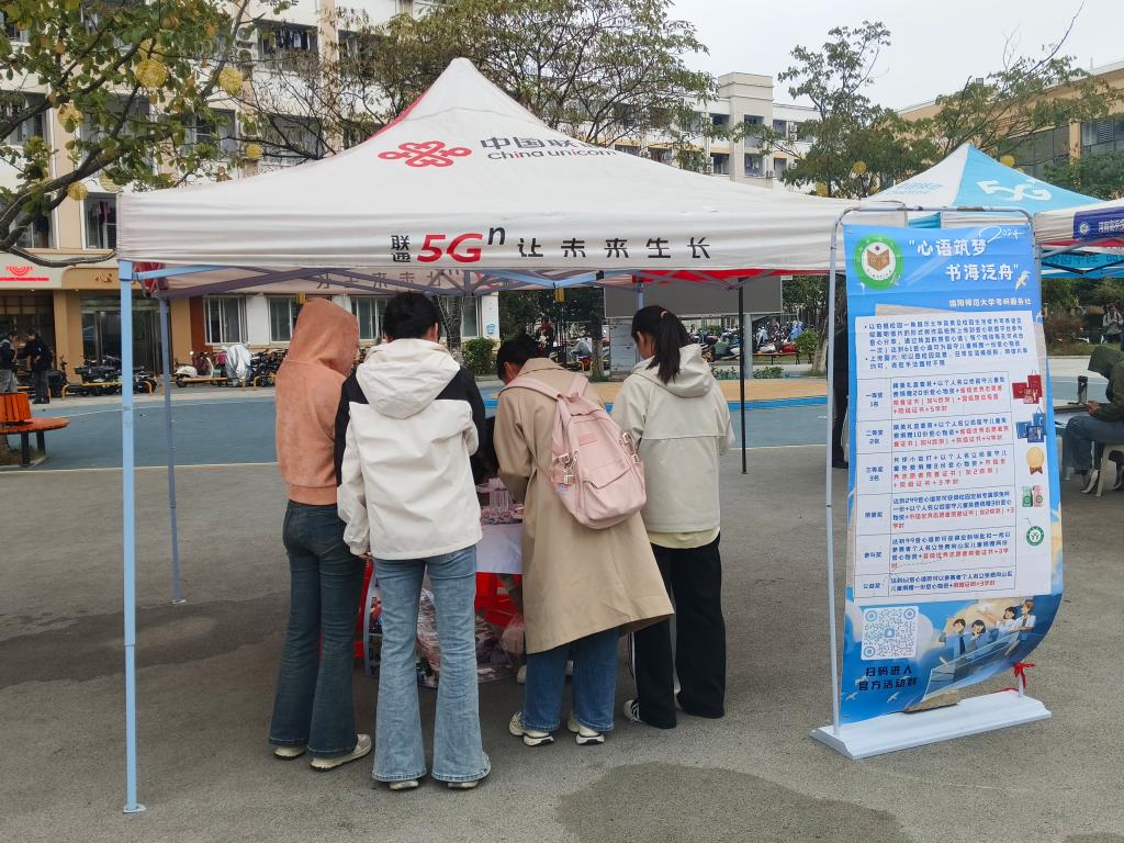 在我国,有大量的留守儿童由于父母外出打工,在成长过程中面临着诸多困难和挑战,其中缺乏书籍就是一个重要问题。10月19日,考研服务社于心语广场成功举办了以“心语筑梦,书海泛舟”为主题的校园公益活动,本次活动面向学校全体学生,由社长丁文倩、团支书冀艺婷共同组织。