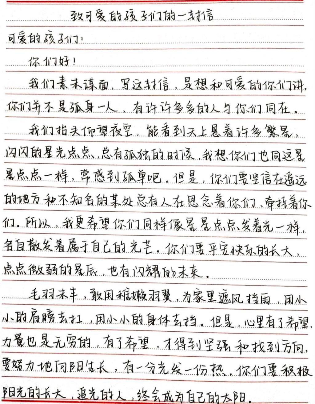 活动筹备阶段,考研服务社通过官方QQ、微博等新媒体平台进行广泛宣传,吸引了众多青年学子的关注。活动采用线上形式开展,参与者通过云端执笔,撰写百余封饱含深情的书信,用文字搭建起与特殊教育学校学生之间的心灵桥梁。信件内容既有对特殊教育学校学生勇敢面对生活挑战的敬佩与鼓励,也有分享个人成长经历的真诚交流,字里行间彰显着新时代青年的温暖情怀与责任担当。据统计,本次活动共收到信件两百余封,每一封信件都承载着青年学子的深情厚谊,跨越屏幕,传递到特殊教育学校学生的手中。收到信件的孩子们脸上洋溢着幸福的笑容,感受到了来自社会的关爱与温暖。同时,参与活动的青年学子也表示,通过撰写信件,不仅锻炼了自己的表达能力,更深化了对特殊群体的理解,增强社会责任感与人文关怀意识。