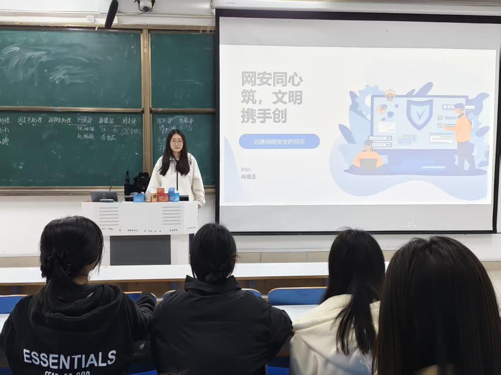 团课伊始,团支书肖倩玉结合数字化时代背景,剖析网络安全的战略意义,通过网络犯罪、数据泄露等真实案例,揭示网络安全对个人、社会乃至国家的深远影响。随后,活动以“认知——技能——担当”为逻辑线层层推进:先是解读国家网络安全政策,明确青年在维护网络清朗中的使命;再通过防诈骗模拟、数据保护知识问答等互动环节,让学生掌握实用网络安全技能;最后引导大家思考如何以“数字公民”的身份践行网络文明,做到自律上网、理性发声。现场同学专注投入,在案例分析与实践演练中深化了对网络安全的认知。