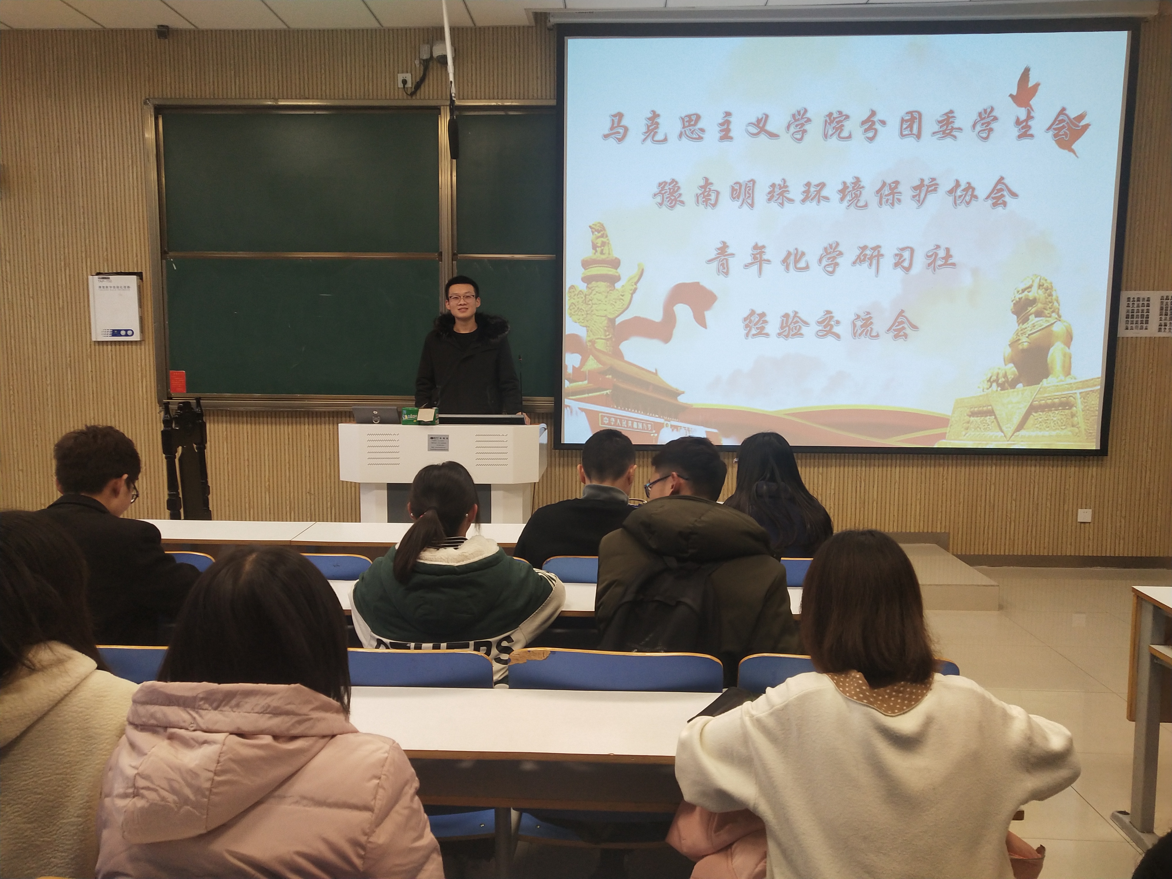 为加强社团间的联系与交流,促进社团持续健康发展。11月26日下午,豫南明珠环境保护协会、爱心服务社、青年化学研习社在社科楼515教室顺利开展经验交流会,豫南明珠环境保护协会会长吕苗苗、爱心服务社社长罗露雨、青年化学研习社社长高向阳及各社团相关负责人共同参加此次会议。会议由吕苗苗主持。