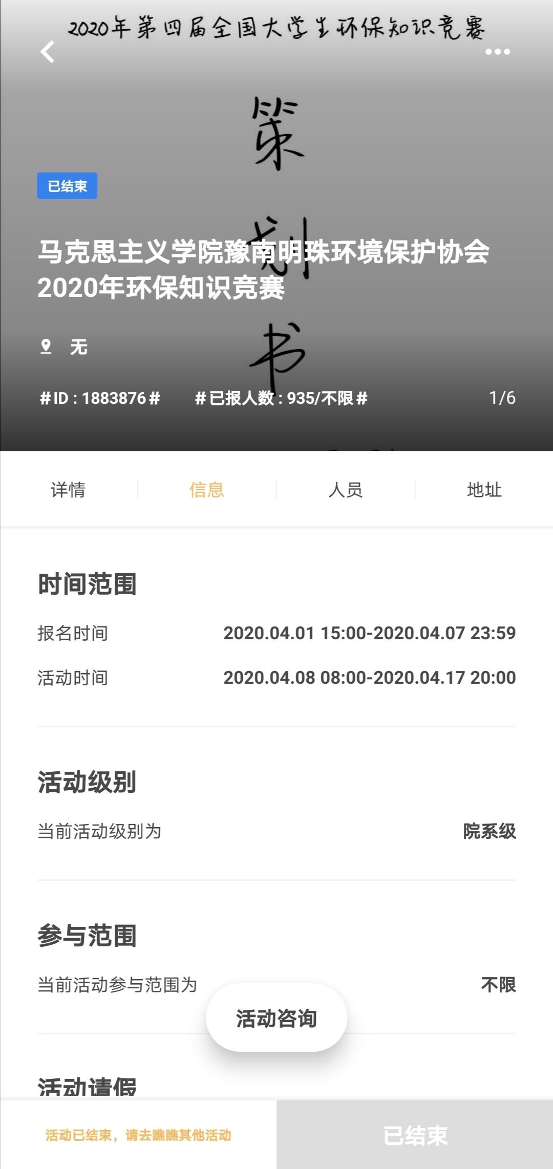 为提高大学生环保意识,增加大学生环保知识,3月28日—6月30日,由豫南明珠保环境保护协会主办、WilliamHILL中国分团委和信阳师范学院后勤管理处承办的2020年第四届全国大学生环保知识竞赛于线上成功举行。