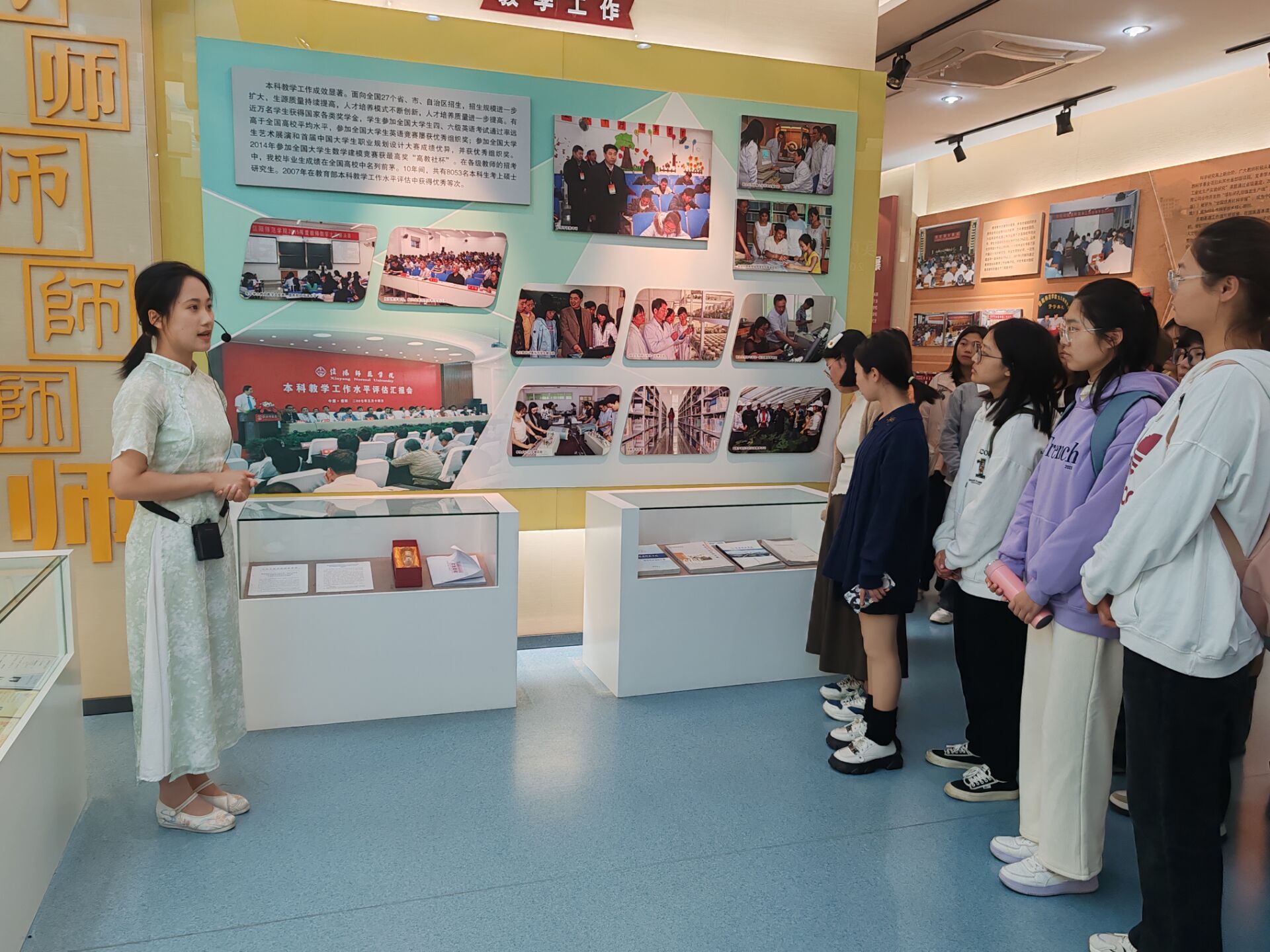 国以史为鉴,校以史明德。校史馆以实物、图片、文字、影像等展示学校的历史与成就。步入序厅,一座恢弘的展板将学校的历史沿革和发展变迁娓娓道来。从一代代师大人接续奋斗、为强校建设不断奋斗的人物照片到琳琅满目的党建、科研、教学成果,满载学校历史的照片墙和实物一一展现在大家面前。在讲解员的带领下,同学们走过一个个深刻呈现了我校美好过往的专题展区。这些专题展区深刻地再现了我校四十多的风雨沧桑,四十多年的栉风沐雨。四十多年间,一代代信师人薪火相传、砥砺奋进,历经一系列的风雨变迁,成就了今天的Williamhill中文。面对我校当今所取得的一系列成就,同学们纷纷露出了自豪的微笑。