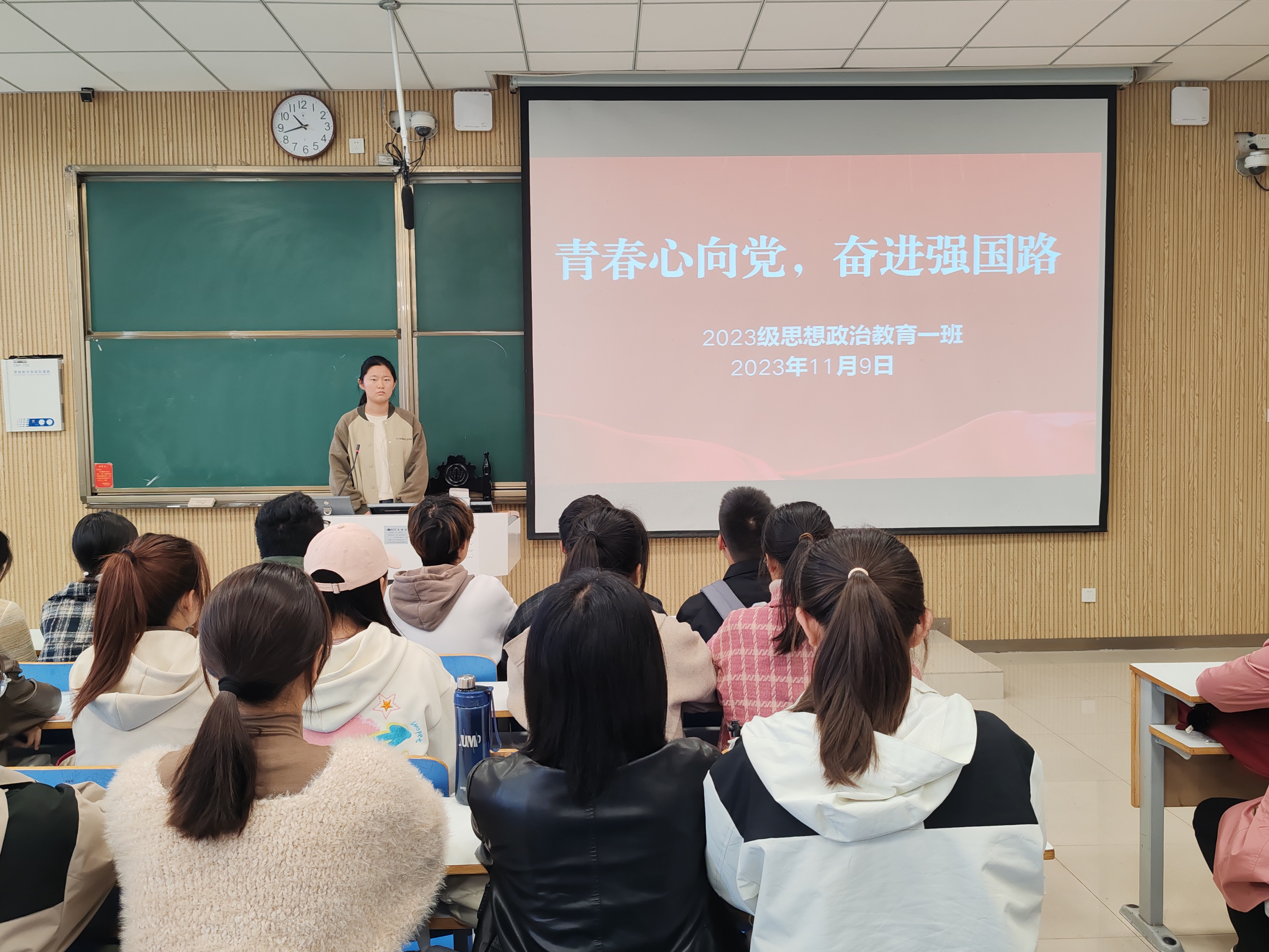 为进一步引导我班学子树立共产主义远大理想,坚定中国特色社会主义共同理想,坚定听党话、跟党走的政治信念,11月8日上午,WilliamHILL中国2023级思想政治教育一班在社科楼515教室召开“青年心向党,奋进强国路”主题团课。我院2023级思想政治教育一班全体同学共同参与本次团课,团课由团支书张卓主持。