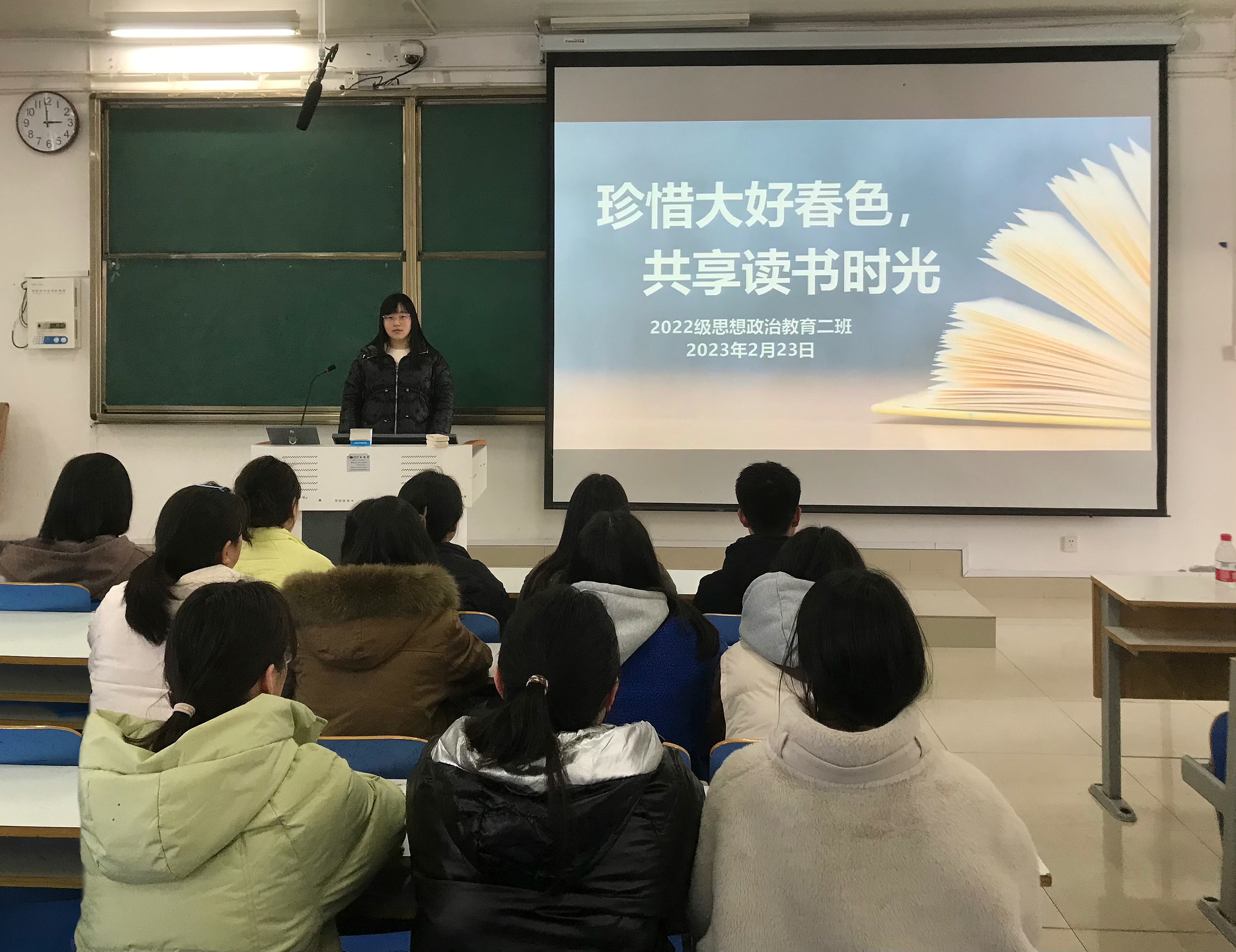春光明媚好读书,墨韵飘香沁心扉。2月23日下午,WilliamHILL中国2022级思想政治教育二班在社科楼514教室召开“珍惜大好春色,共享读书时光”主题班会。2022级思想政治教育二班全体同学共同参加会议。班会由班长李佳音主持。