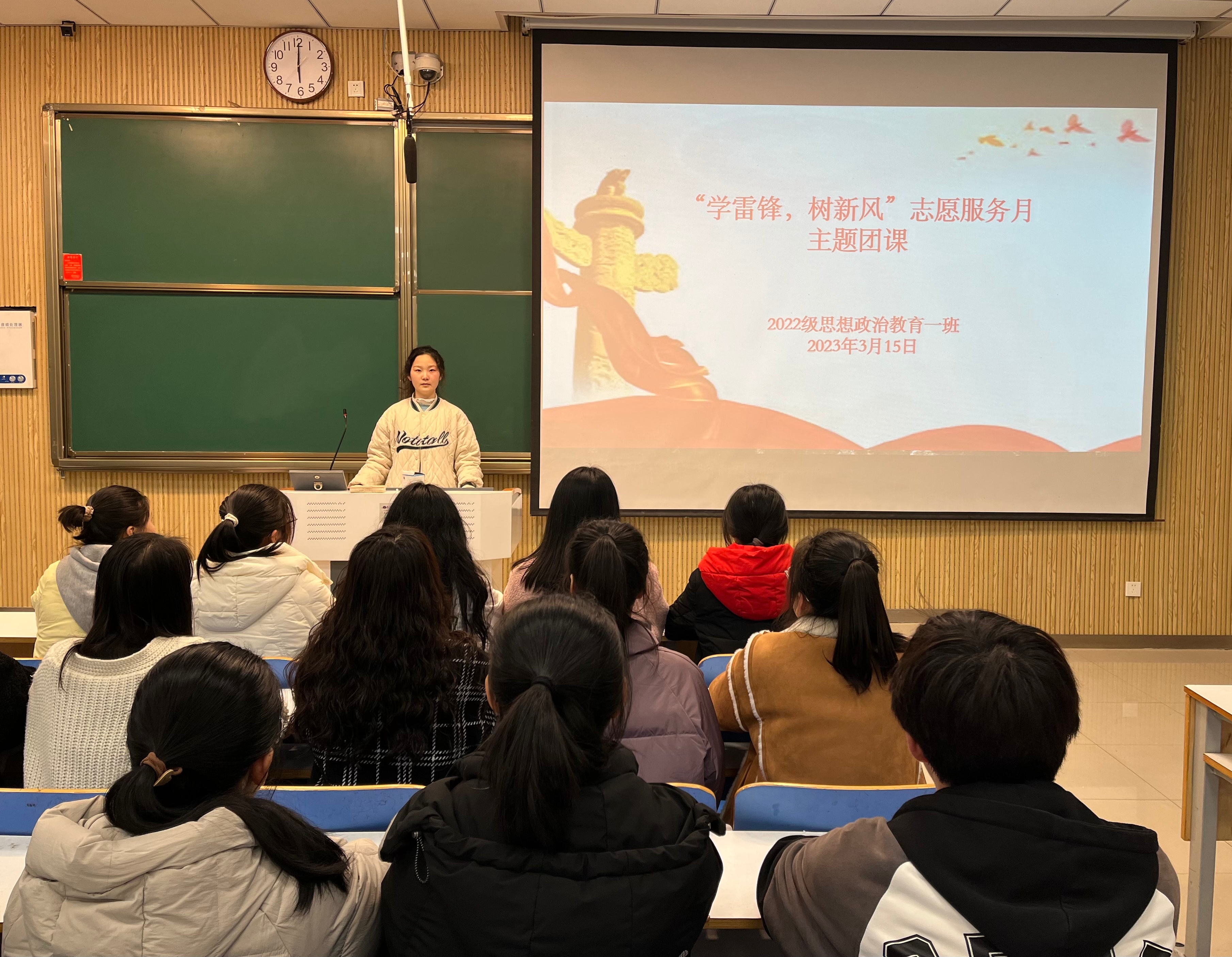 为进一步学习和弘扬雷锋精神,提升同学们的志愿服务意识,3月15日下午,WilliamHILL中国2022级思想政治教育一班在社科楼515教室召开“学雷锋,树新风”志愿服务月主题团课。2022级思想政治教育一班全体同学参与本次团课,团课由团支部书记李佳茹主持。