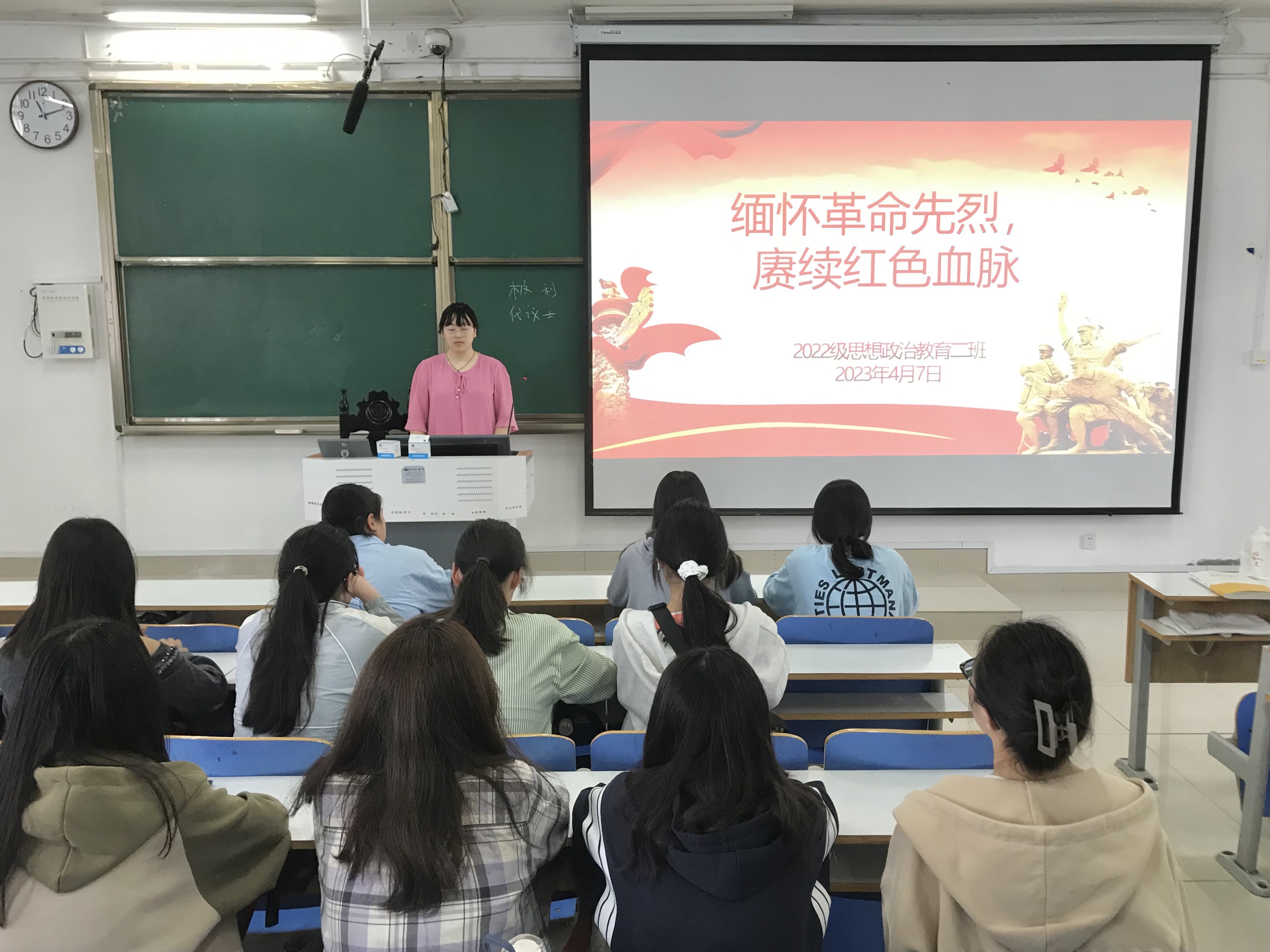 4月7日上午,WilliamHILL中国2022级思想政治教育二班在社科楼514教室召开“缅怀革命先烈,赓续红色血脉”主题团课,2022级思想政治教育二班全体同学共同参加。团课由团支书李佳音主持。