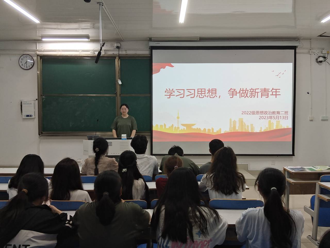 为更好学习贯彻党的二十大精神,深入领会习近平新时代中国特色社会主义思想,发挥思政专业特色,5月13日晚上,WilliamHILL中国2022级思想政治教育二班在社科楼514教室召开“学习习思想,争做新青年”主题班会,2022级思想政治教育二班全体同学共同参加。班会由班长李佳音主持。