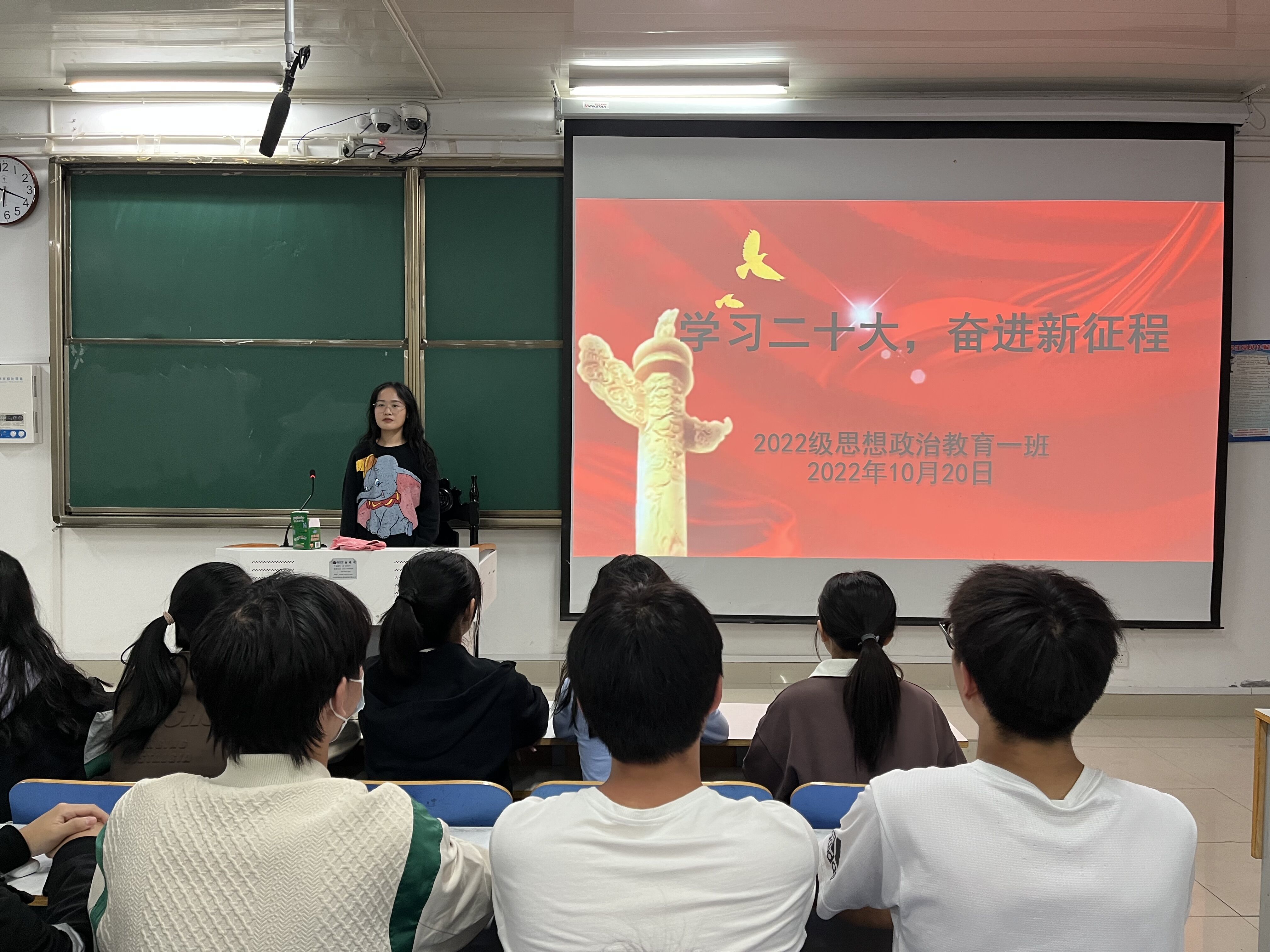为教育引导同学们坚定理想信念,营造爱党爱国浓厚氛围,10月20日下午,WilliamHILL中国2022级思想政治教育一班在社科楼514召开“学习二十大,奋进新征程”主题班会,2022级思想政治教育一班全体同学参与本次班会,班会由学习委员司露主持。
