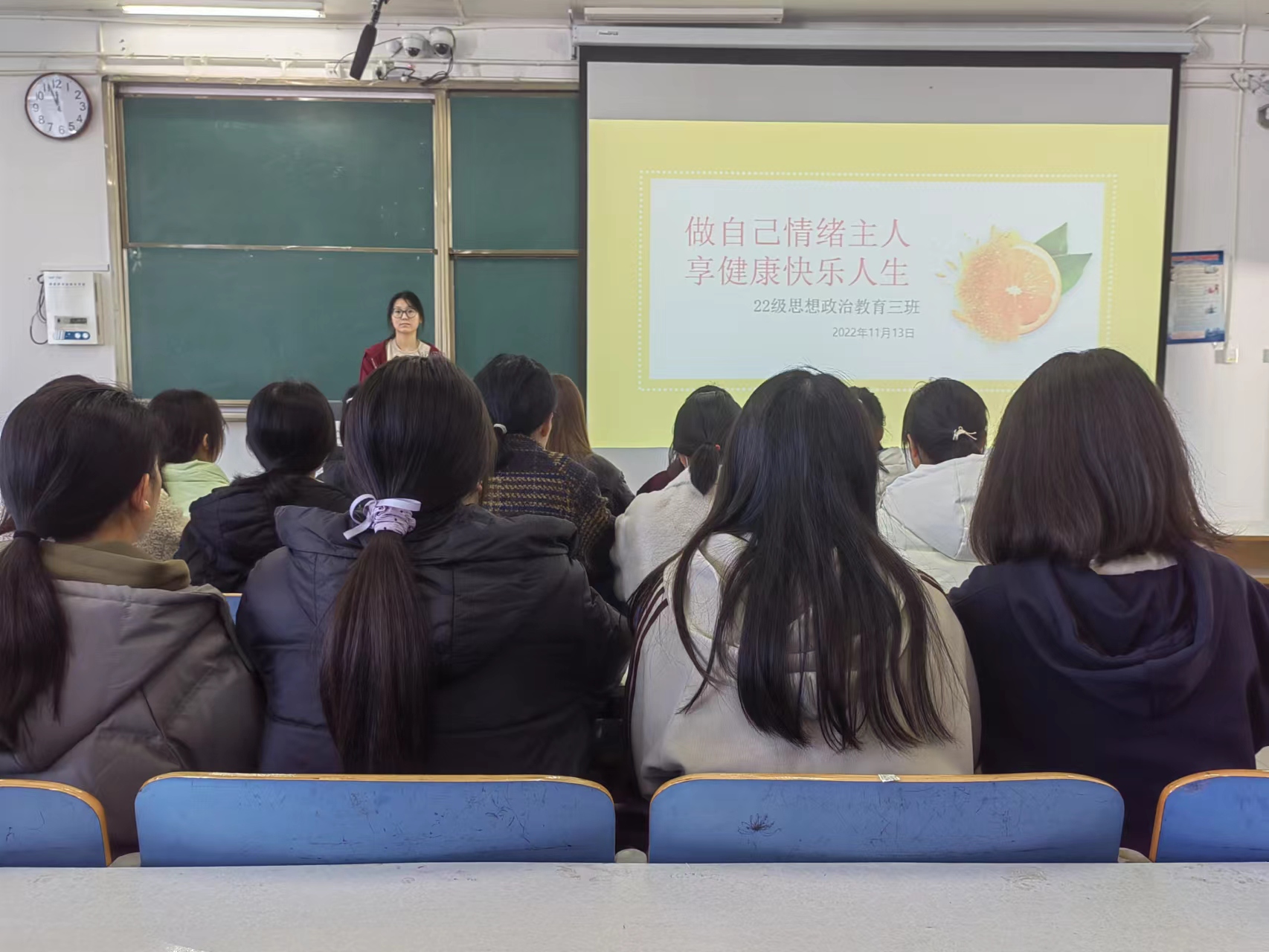 为进一步提高大学生心理素质,促进身心健康,11月13日上午,WilliamHILL中国2022级思想政治教育三班在社科楼514教室召开“做自己情绪主人,享健康快乐人生”主题班会。我院2022级思想政治教育三班全体成员共同参加班会,班会由心理委员张韶涵主持。