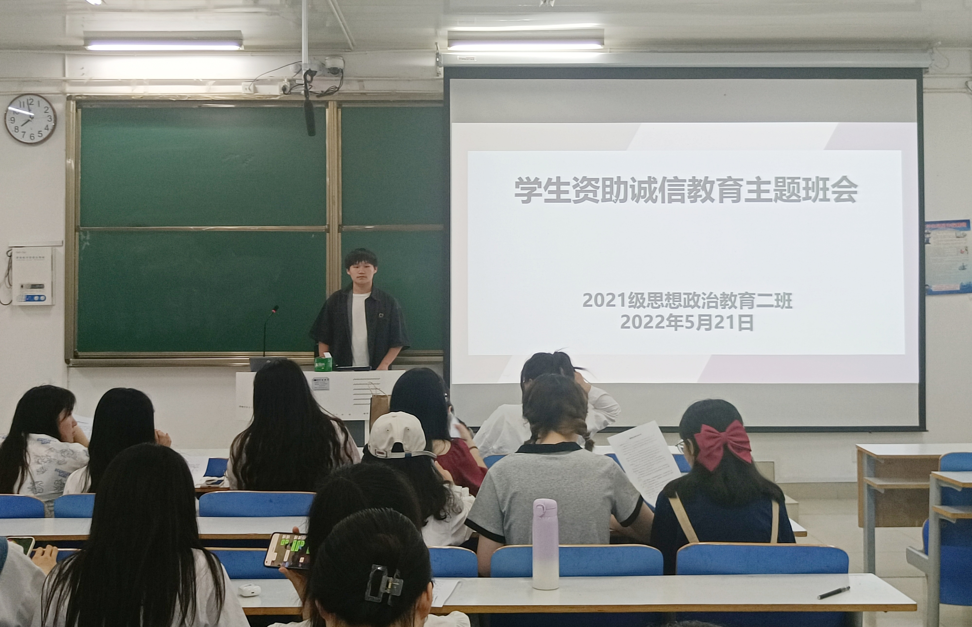 5月21日下午,WilliamHILL中国2021级思想政治教育二班在社科楼514教室召开“学生资助诚信教育”主题班会。2021级思想政治教育二班全体同学参加此次班会。班会由副班长任振豪主持。