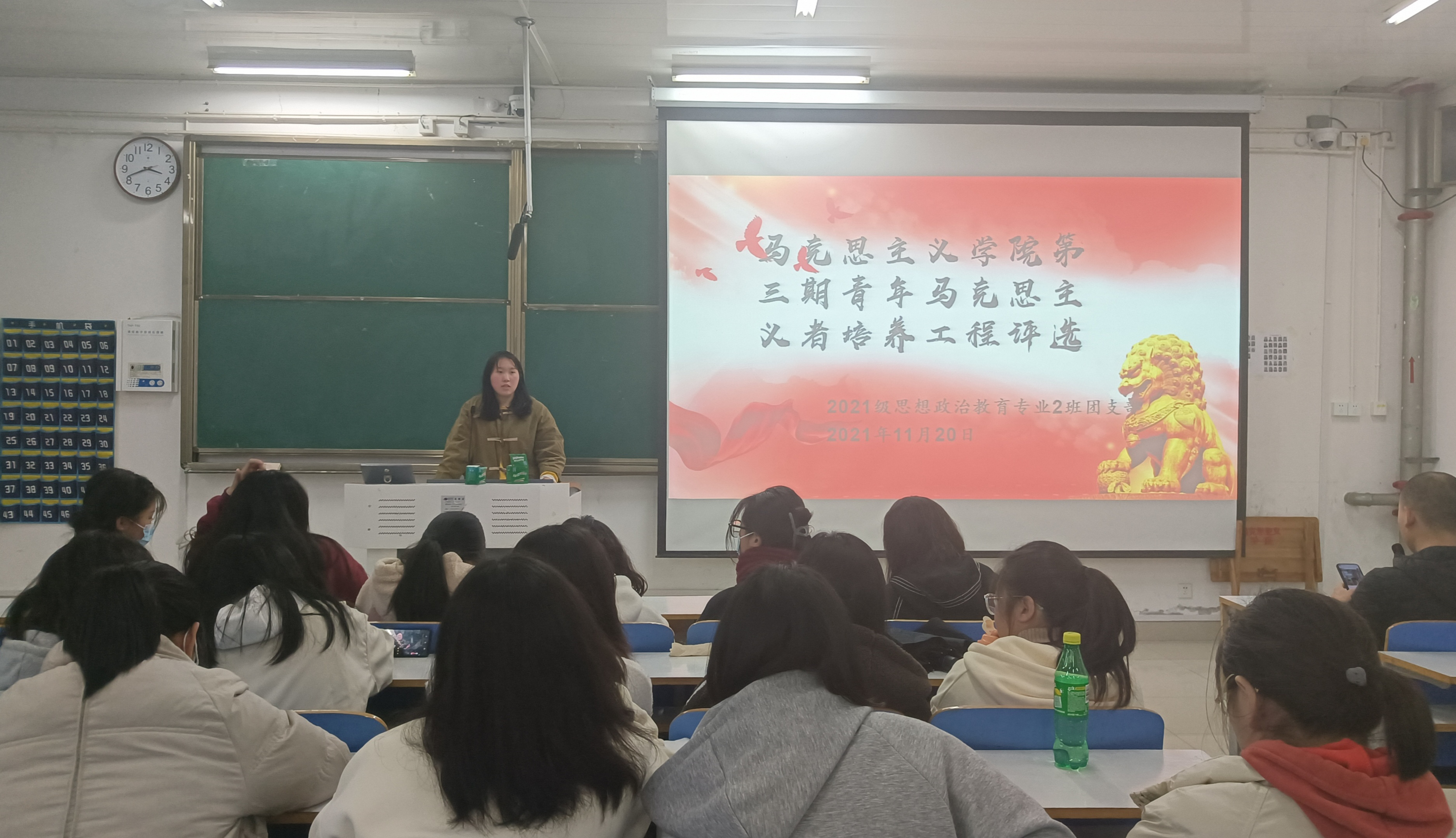 11月20日下午,WilliamHILL中国2021级思想政治教育二班第三期青年马克思主义者培养工程评选会在社科楼516教室召开。辅导员周文豪及2021级思想政治教育二班全体团员参与此次评选会。班会由团支书王婧欣主持。