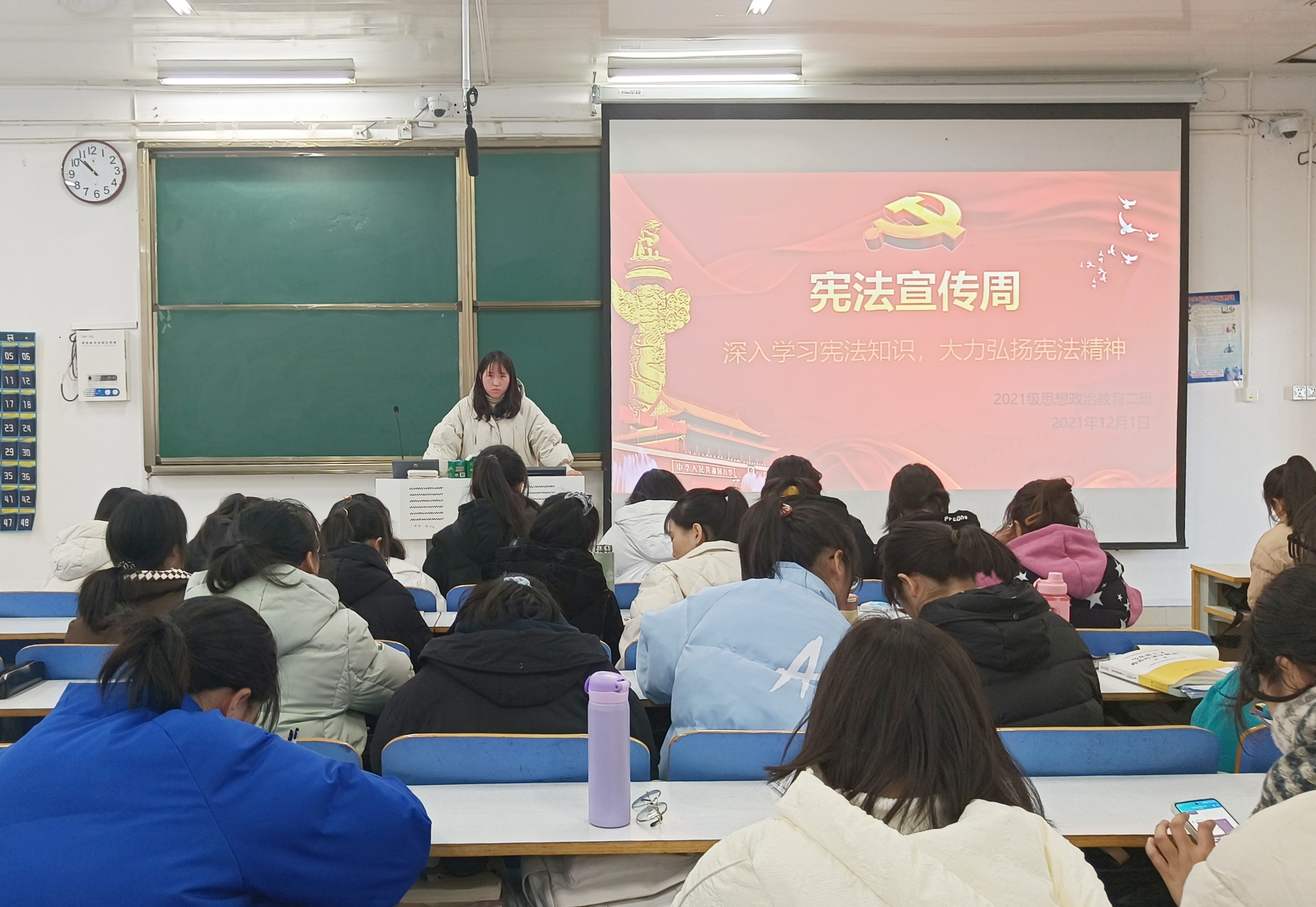 12月1日上午,WilliamHILL中国2021级思想政治教育二班宪法宣传周主题班会在社科楼514教室召开。2021级思想政治教育二班全体同学参加此次班会,班会由团支书王婧欣主持。