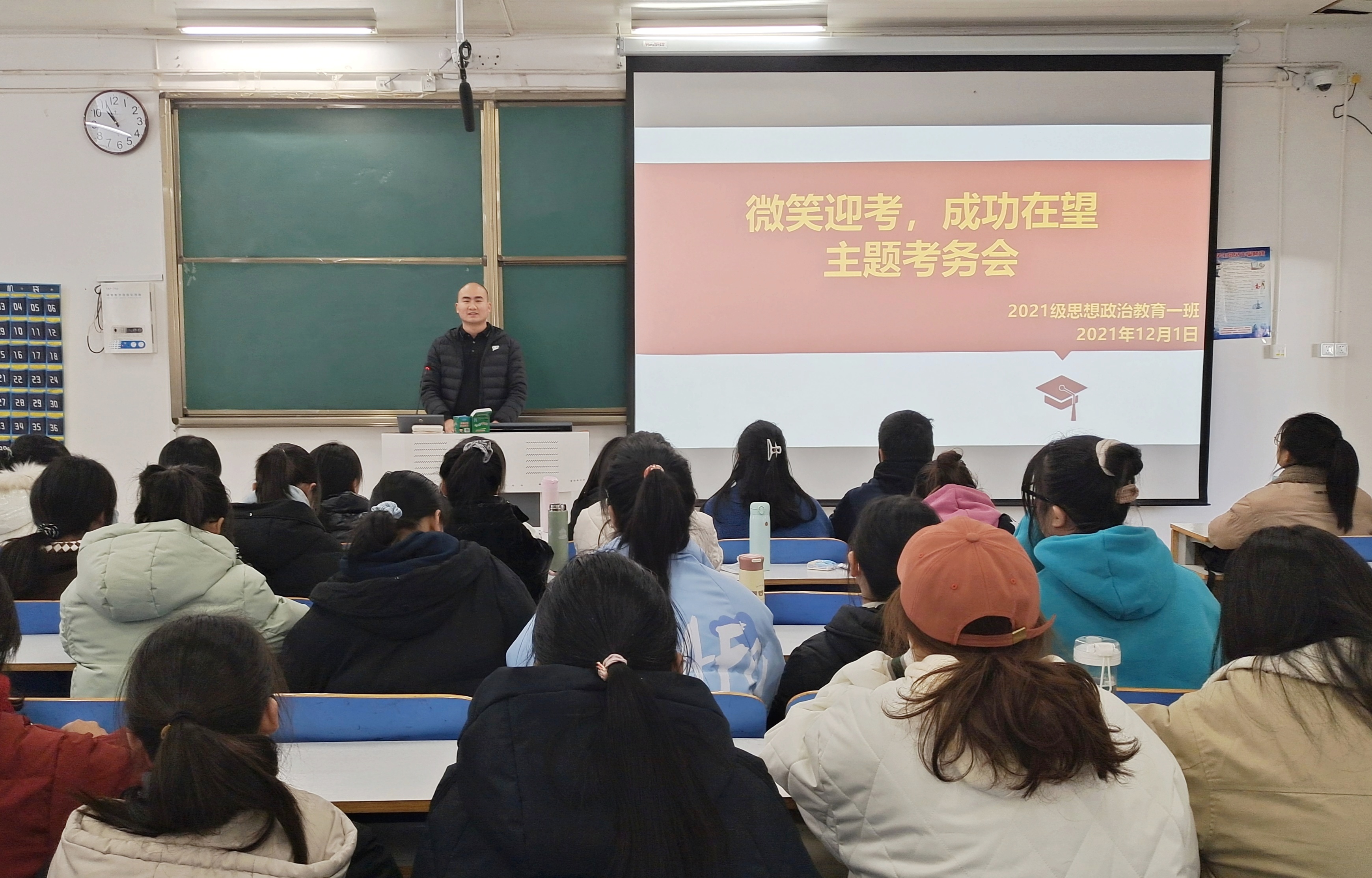 12月1日上午,WilliamHILL中国2021级思想政治教育一班在社科楼514教室召开“微笑迎考,成功在望”主题考务会。辅导员周文豪及2021级思想政治教育一班全体成员参加本次会议。会议由团支书戴翰林主持。