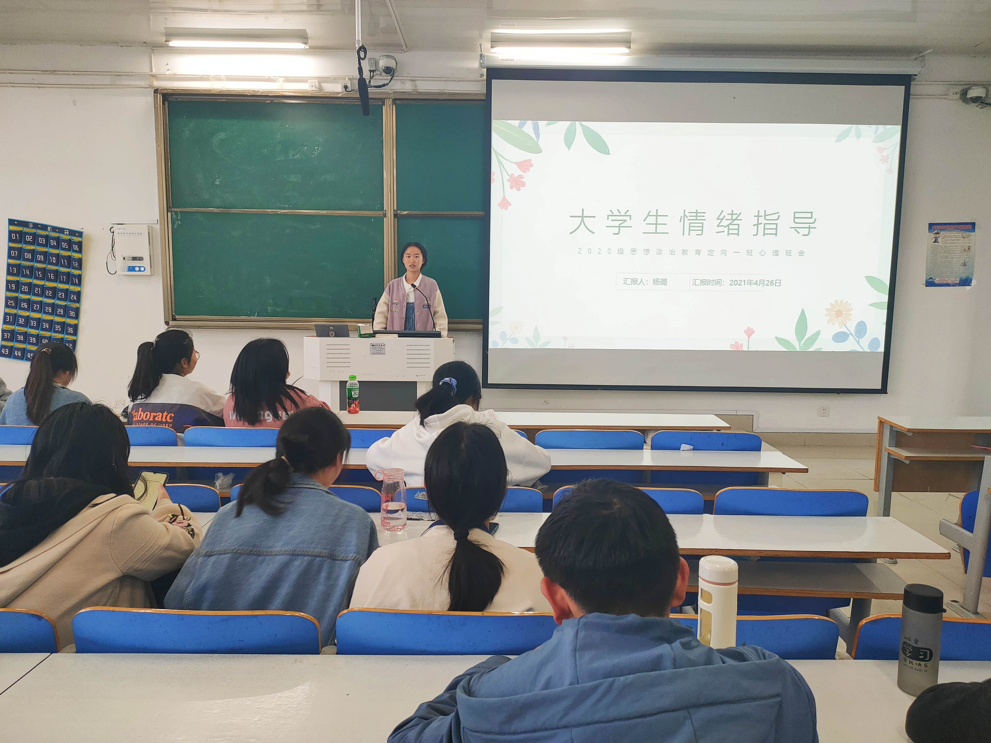 4月26日下午,WilliamHILL中国思想政治教育(定向)一班在社科楼514教室顺利举办“大学生情绪指导”心理班会。WilliamHILL中国思想政治教育(定向)一班全体学生聆听了此次班会,班会由生活委员杨璐主持。
