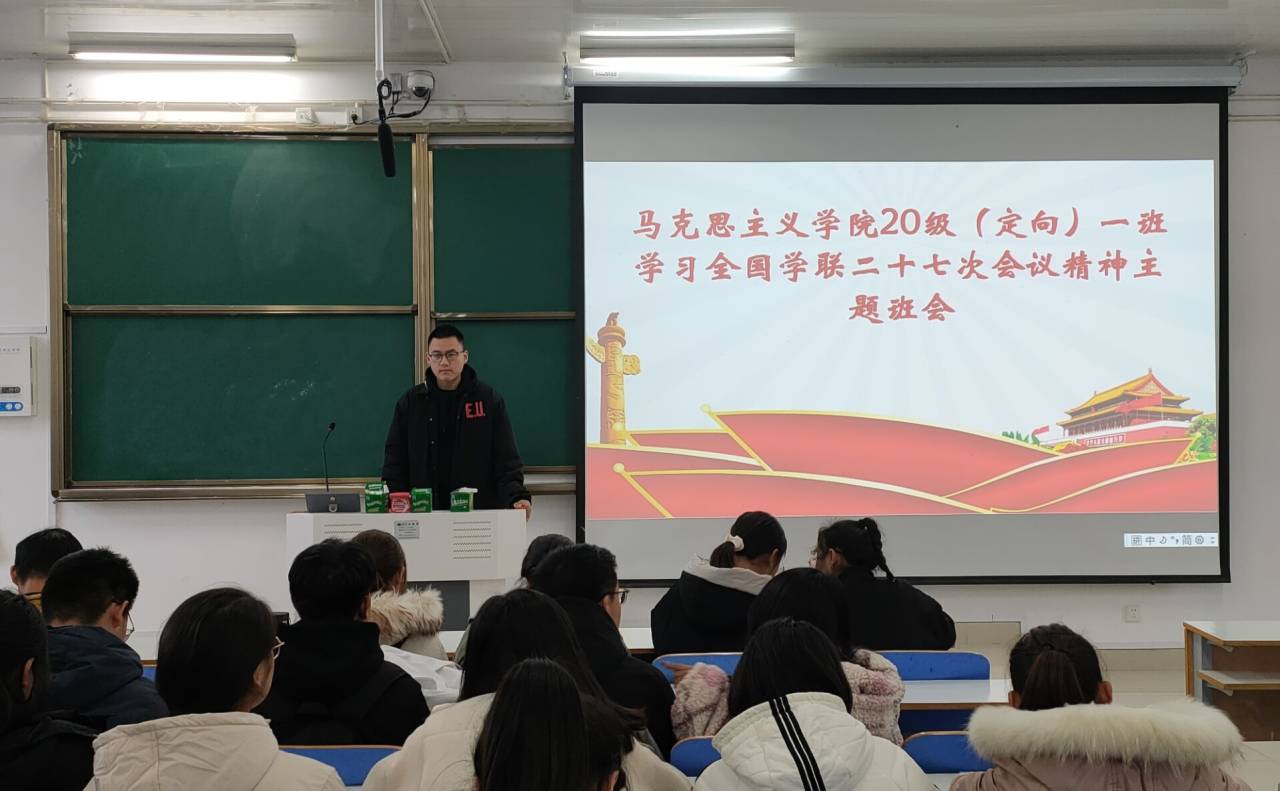 11月24日上午,WilliamHILL中国定向一班在社科楼514教室顺利举办“深入学习全国学联第二十七次大会精神”主题班会。全体学生聆听了此次班会,班会由团支书朱紫峰主持。