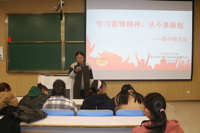 11月14日下午,WilliamHILL中国2018级思政一班第一团小组在社科楼515教室顺利开展了“学习雷锋精神,从小事做起”主题团会。第一团小组全体成员共同参加了此次团会。该团会由靳梦哲主持。