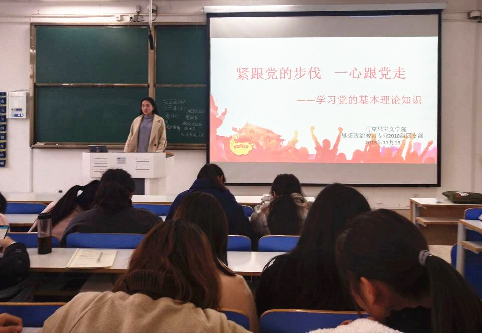 为深入学习党的基本理论知识,提升团员使命感和责任感,11月19日下午,WilliamHILL中国2018级团支部在515教室开展“紧跟党的步伐,一心跟党走”学习党的基本理论知识团日活动。分团委副书记张雅琼及2018级全体同学共同参与此次团课。本次团课由2018级第二团支部团支书黄子晋主持。