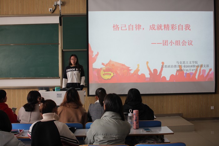 11月27日上午,我院2018级第一团支部第二团小组在社科楼515教室顺利开展了“恪己自律,成就精彩自我”主题团会。第二团小组全体成员共同参加了此次团会。该团会由团小组成员王涵主持。