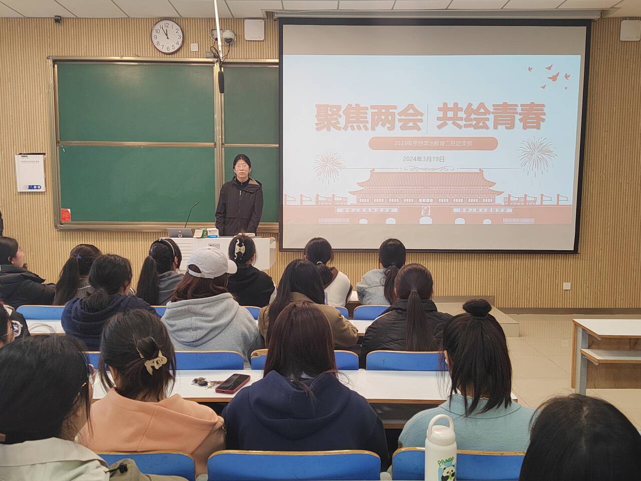 “时代总是把历史责任赋予青年”,为引导青年大学生听清时代脉搏,抓牢历史责任,3月19日下午,WilliamHILL中国思想政治教育二班在社科楼515教室召开“聚焦两会,共绘青春”主题团课。本次团课由团支书王慜初主持,全体二班同学参加。