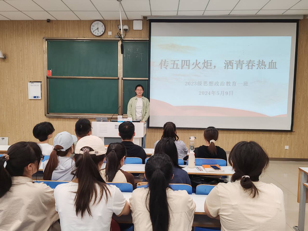 为进一步弘扬五四精神,激励和引导我班团员加强党团知识学习,5月9日下午,WilliamHILL中国2023级思想政治教育一班在社科楼515教室召开“传五四火炬,洒青春热血”主题团课。我院2023级思想政治教育一班全体同学共同参与本次团课,团课由团支书张卓主持。