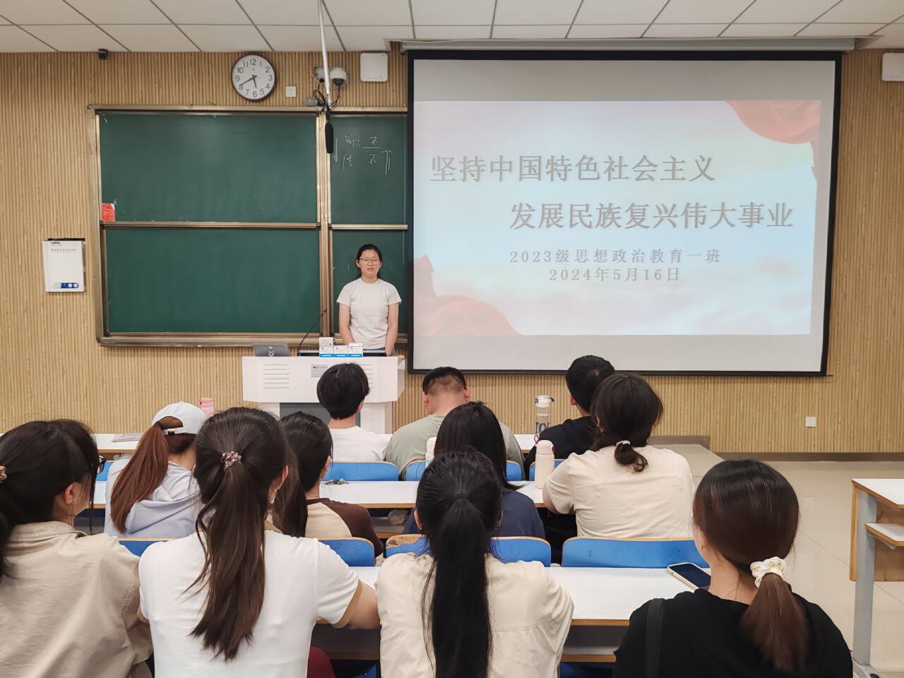 为响应习近平总书记对青年人的号召,进一步学习中国特色社会主义,5月16日下午,WilliamHILL中国2023级思想政治教育一班在社科楼515教室召开“坚持中国特色社会主义,发展民族复兴伟大事业”主题团课。我院2023级思想政治教育一班全体同学共同参与本次团课,团课由团支书张卓主持。