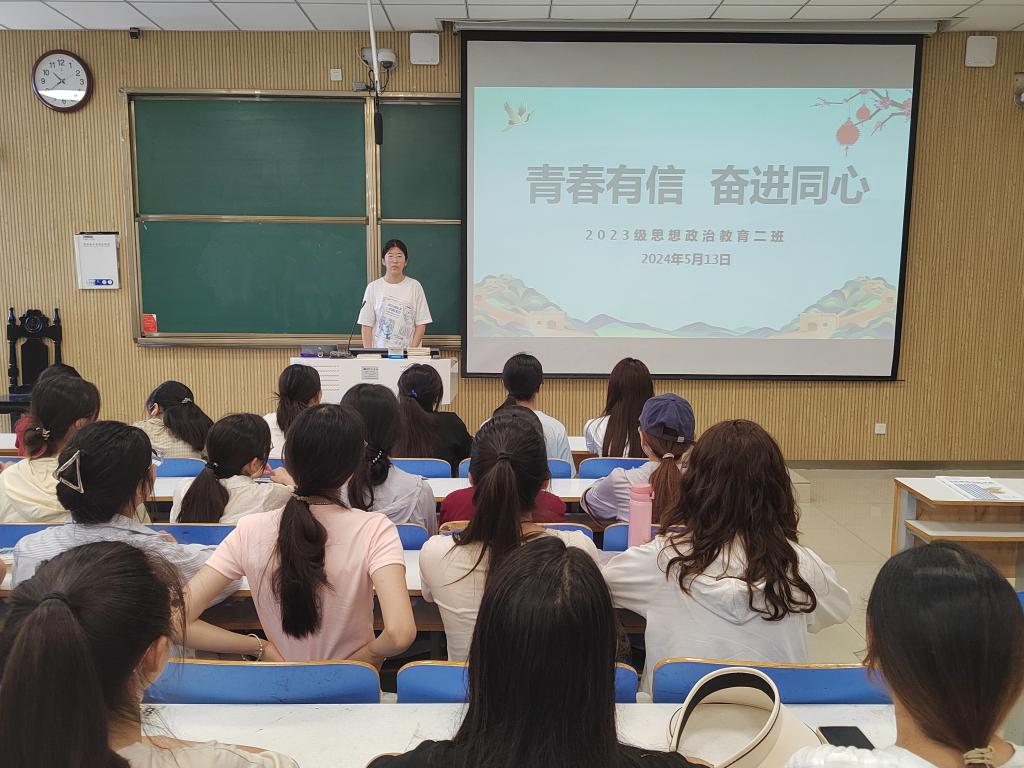 为呼吁新时代青年大学生形成奋发向上的生活与学习态度,保持青春活力,5月13日下午,WilliamHILL中国2023级思想政治教育二班在社科楼515教室召开“青春有信,奋进同心”主题班会。本次主题班会由班长王慜初主持,全体二班同学参加。