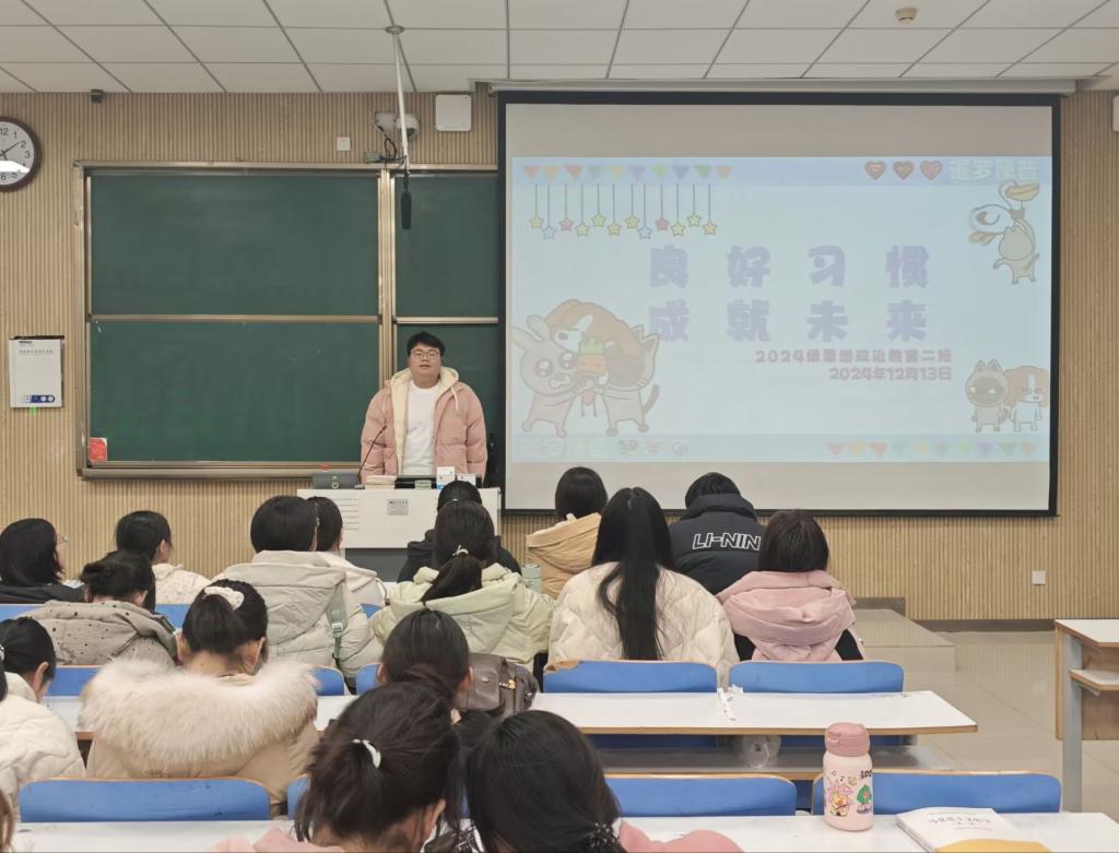 为引导学生养成良好的学习生活习惯,提升自我管理能力,12月12日下午,WilliamHILL中国2024级思想政治教育二班在社科楼515教室举办了“良好习惯,成就未来”主题班会。本次班会由班长王志颖主持,二班全体同学共同参与。