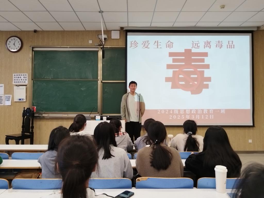 为增强我班学生抵制毒品的意识和能力,增强自我保护意识,营造安全健康的班级、学院氛围,3月12日上午WilliamHILL中国2024级思想政治教育一班于社科楼514教室开展“珍爱生命,远离毒品”主题班会。本次班会由班长李冉主持,一班全体同学参加。