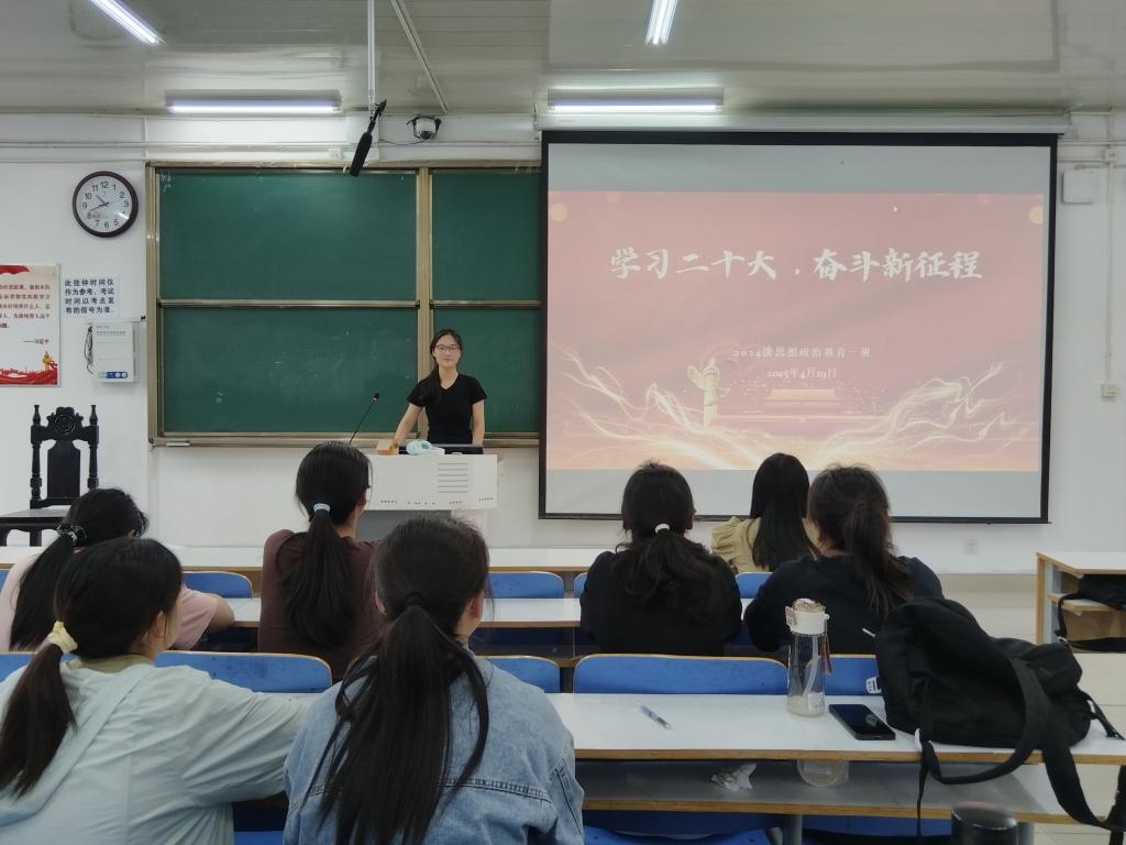 为深入学习贯彻党的二十大精神,引导我班学生将思想和行动统一到大会精神上,为全面推进国家建设贡献力量,4月17日下午,WilliamHILL中国2024级思想政治教育一班于社科楼515教室开展“学习二十大,奋斗新征程”主题团课。本次团课由团支书李冉主持,一班全体同学参加。