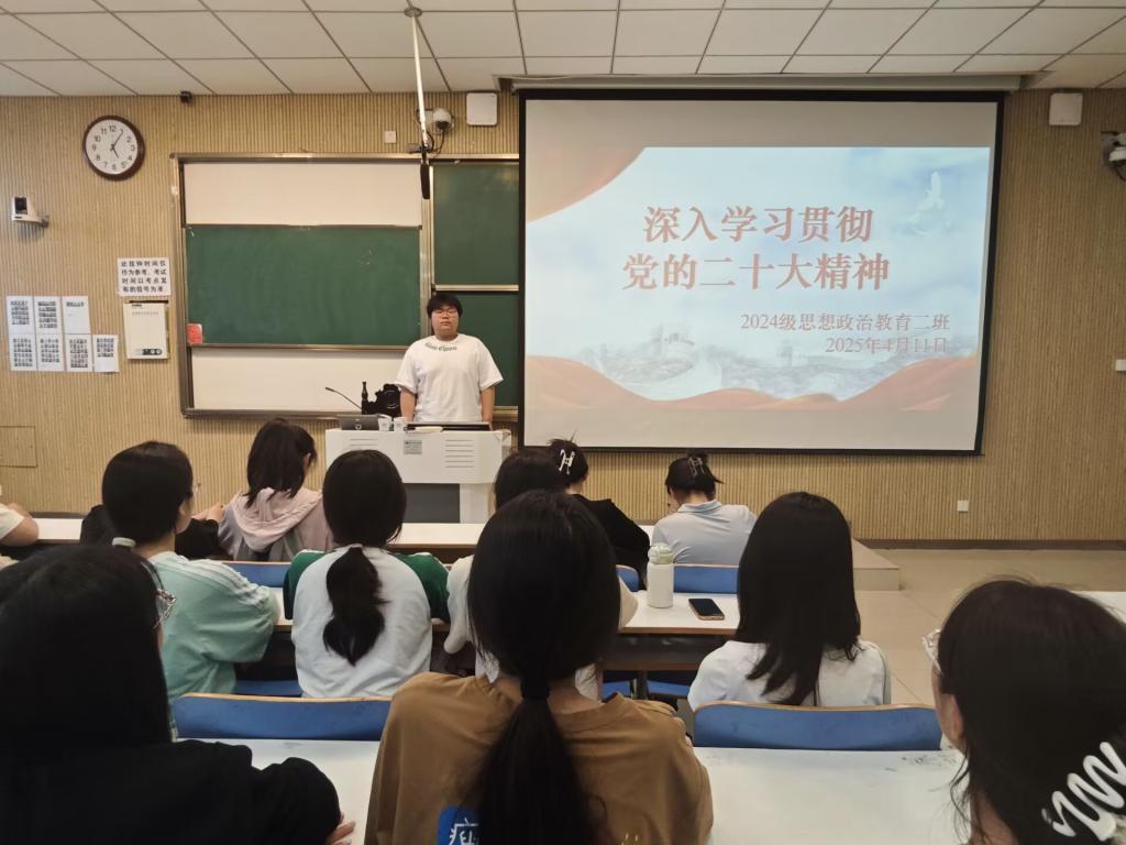 为深入学习贯彻党的二十大精神,增强同学们的政治觉悟和责任担当,4月11日下午,WilliamHILL中国2024级思想政治教育二班在社科楼515教室举办了“深入学习贯彻党的二十大精神”主题班会。本次班会由团支书王志颖主持,二班全体同学积极参与。