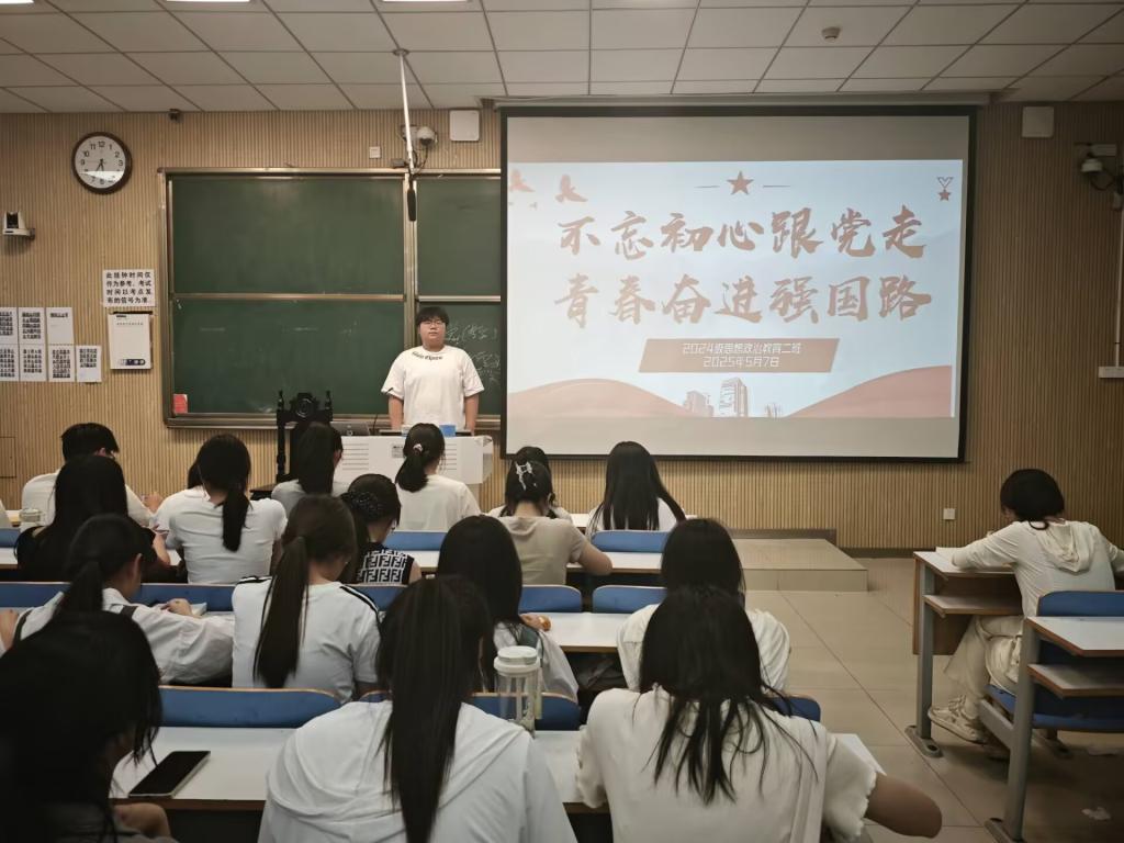为引导青年学生牢记初心使命,坚定理想信念,以实际行动践行党的领导和时代担当,5月7日下午,WilliamHILL中国2024级思想政治教育二班在社科楼515教室举办了“不忘初心跟党走,青春奋进强国路”主题团课。此次团课由团支书王志颖主持,二班全体同学共同参与。