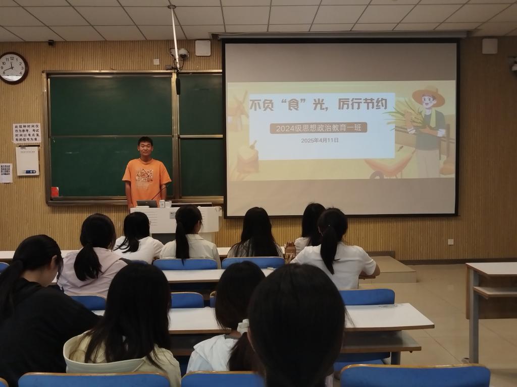 为弘扬勤俭节约的传统美德,培养我班学生珍惜粮食的良好习惯,4月11日上午,WilliamHILL中国2024级思想政治教育一班于社科楼514教室开展“不负‘食’光,厉行节俭”主题班会。本次班会由副班长马奔主持,一班全体同学参加。