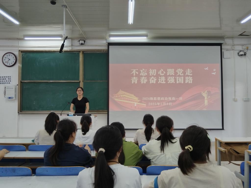 为深入学习贯彻党的二十大精神,引导青年学子坚定理想信念,勇担时代使命,5月8日上午,WilliamHILL中国2024级思想政治教育一班于社科楼514教室召开“不忘初心跟党走,青春奋进强国路”主题团课。本次团课由团支书李冉主持,一班全体同学参加。